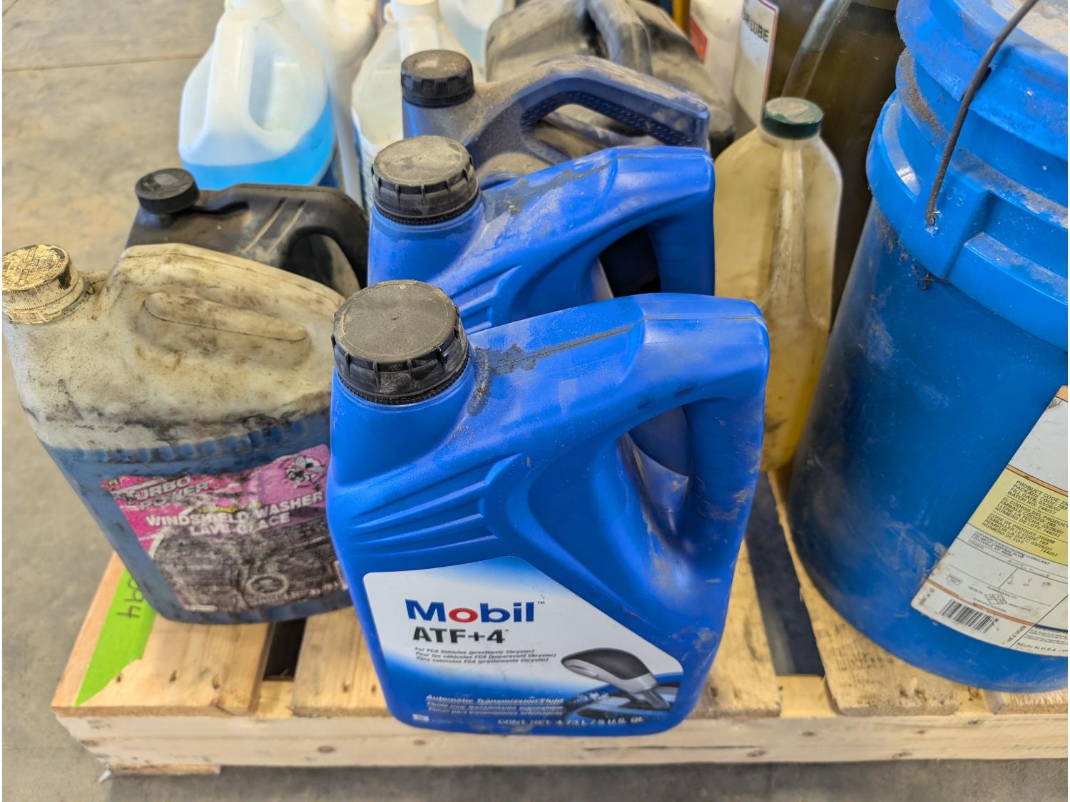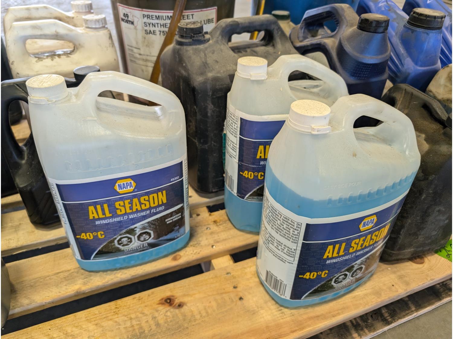 Windshield washer fluid, antifreeze, 5W-20 synthetic engine oil, 5W-40 engine oil, transmission fluid, 15W-40 engine oil, gear oil