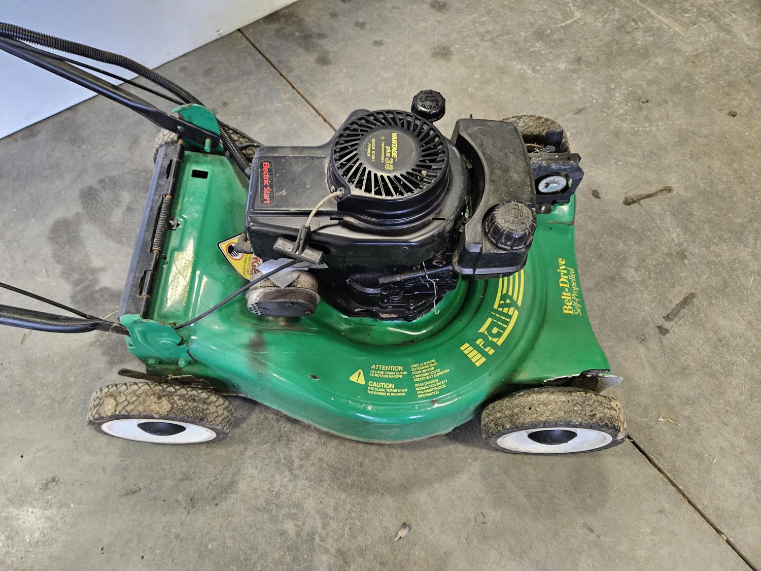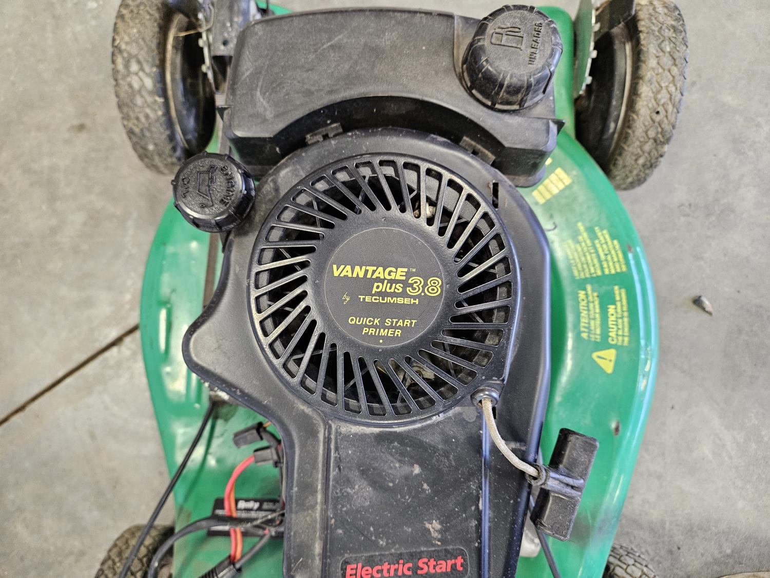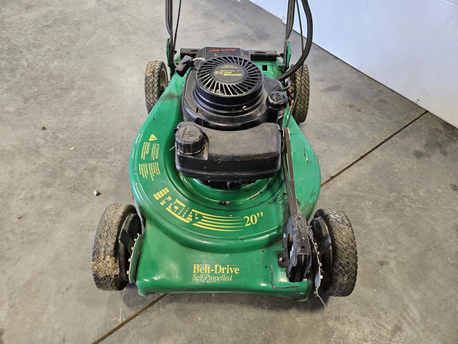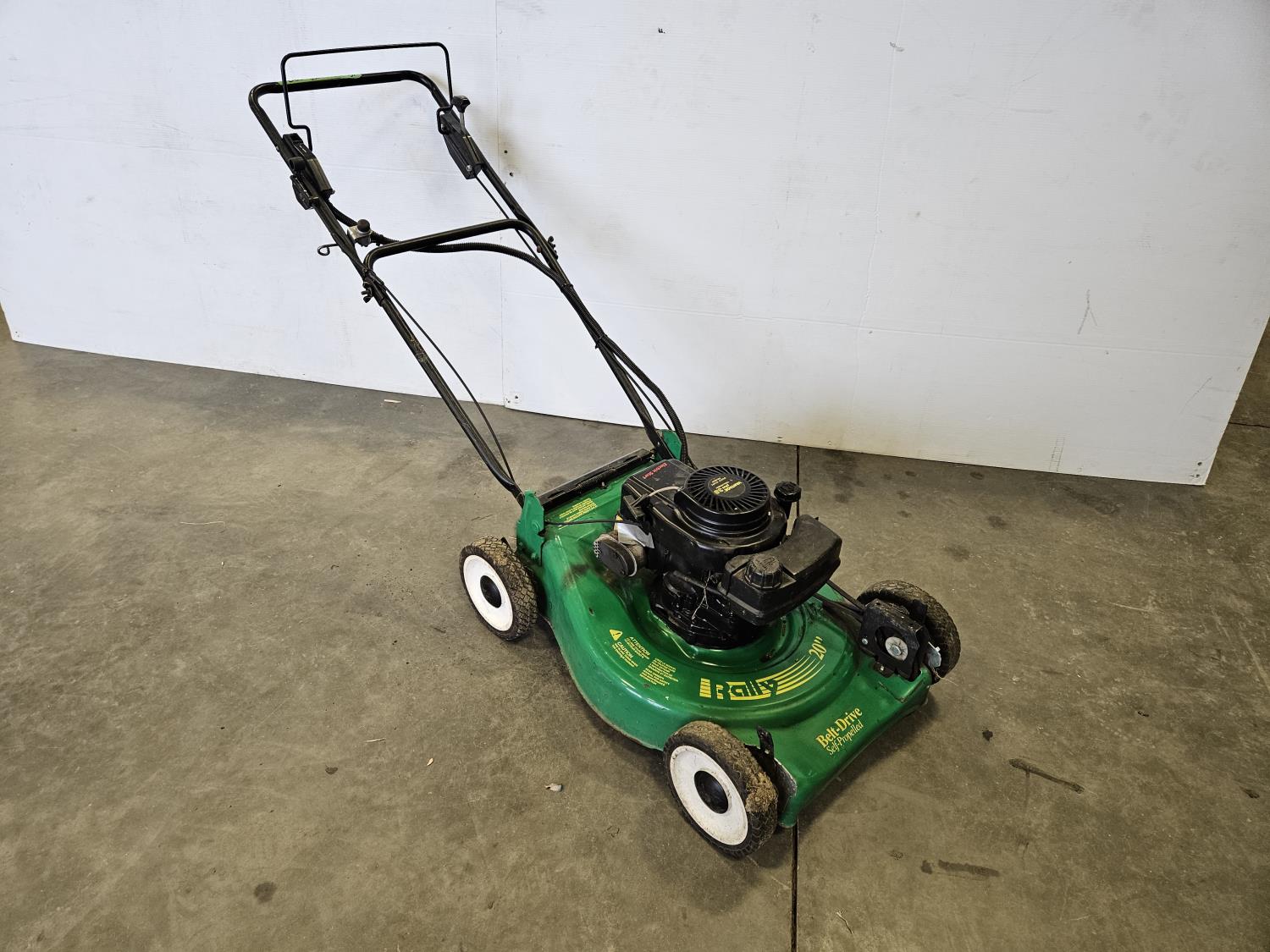20 inch cut, 3.8 HP gas engine, front wheel assist, pulls over