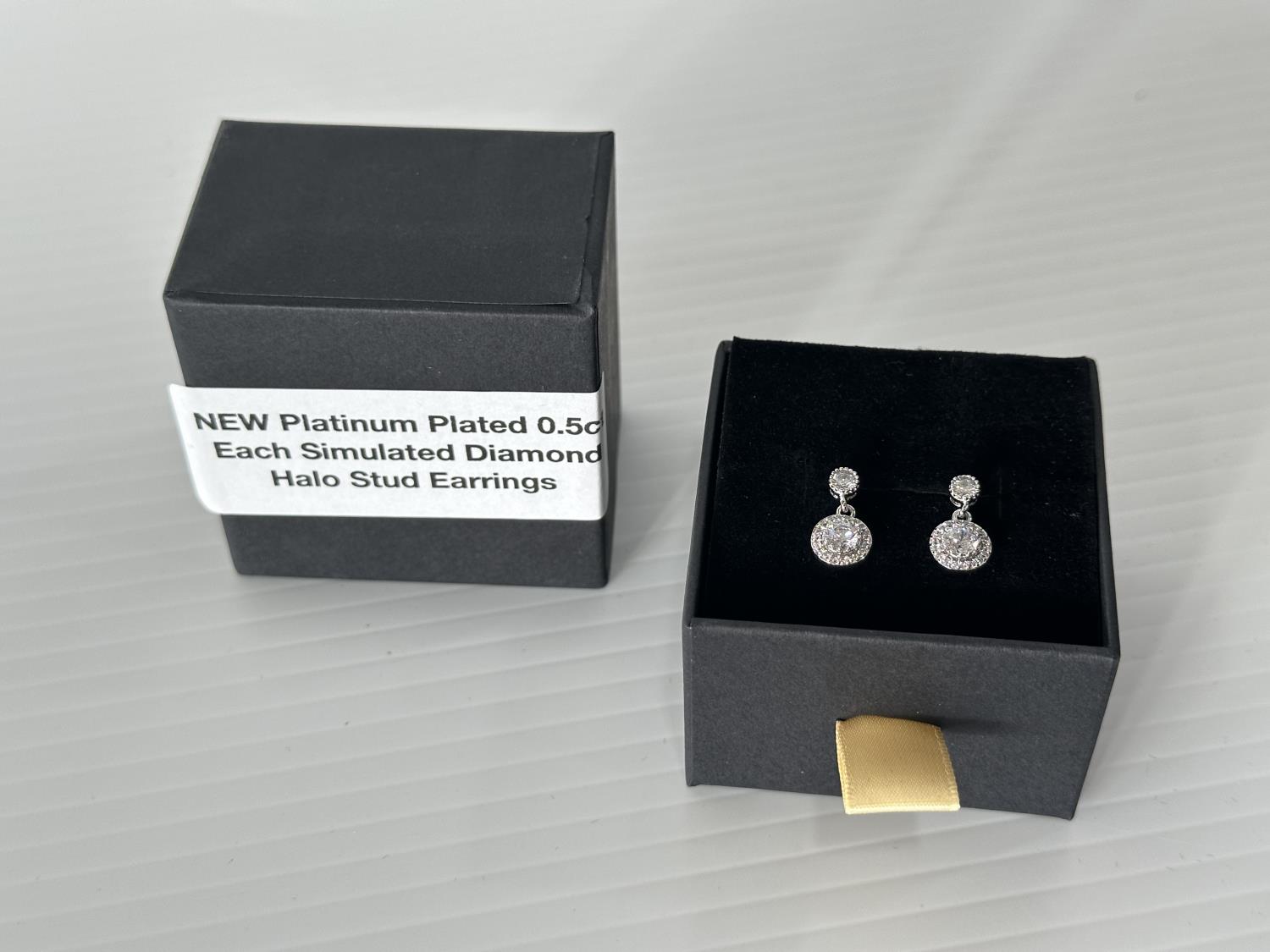 5007 Smartlife Platinum Plated 0.5 Ct Each Simulated Diamond Halo Stud Earrings (Unused)