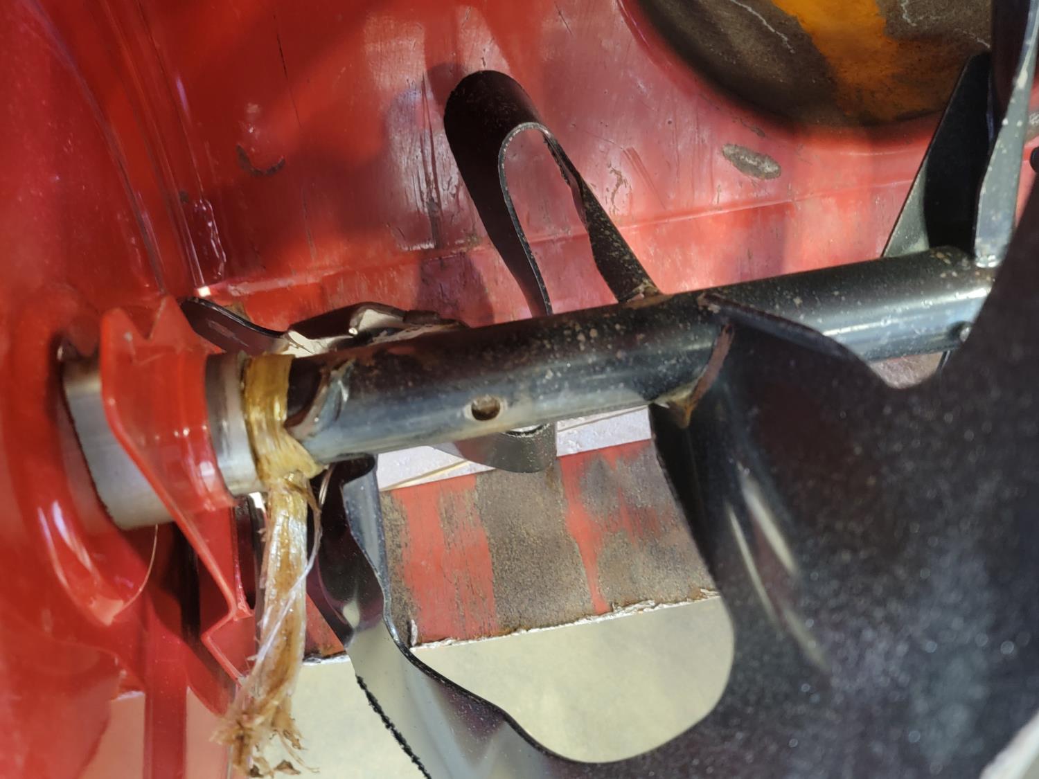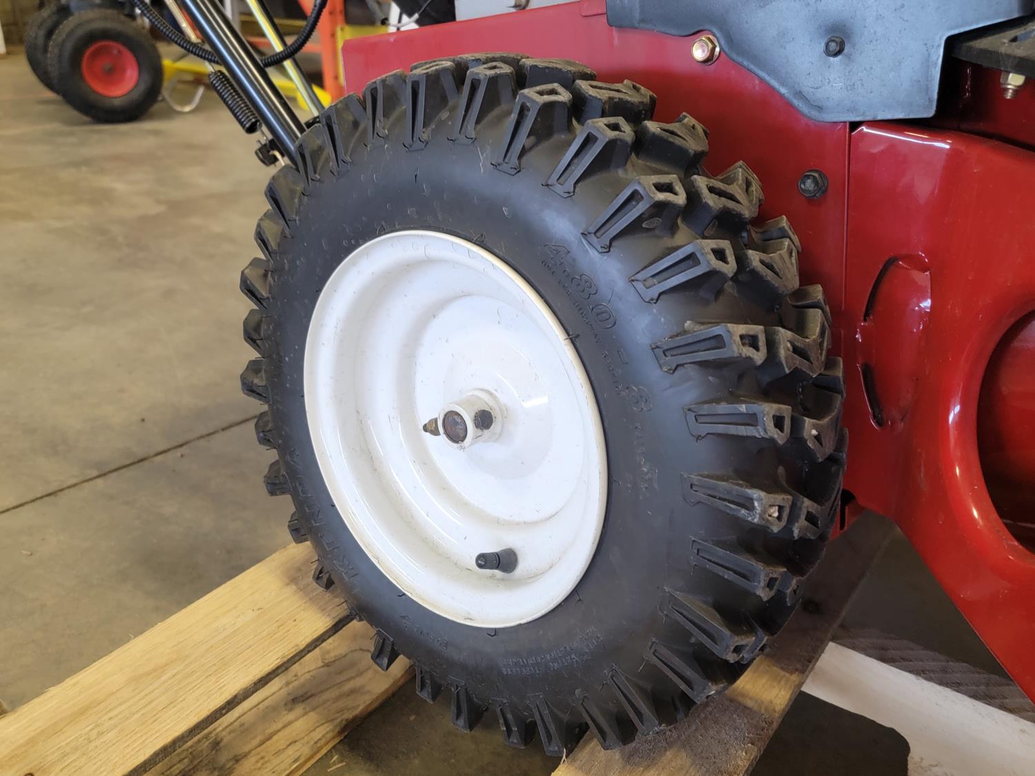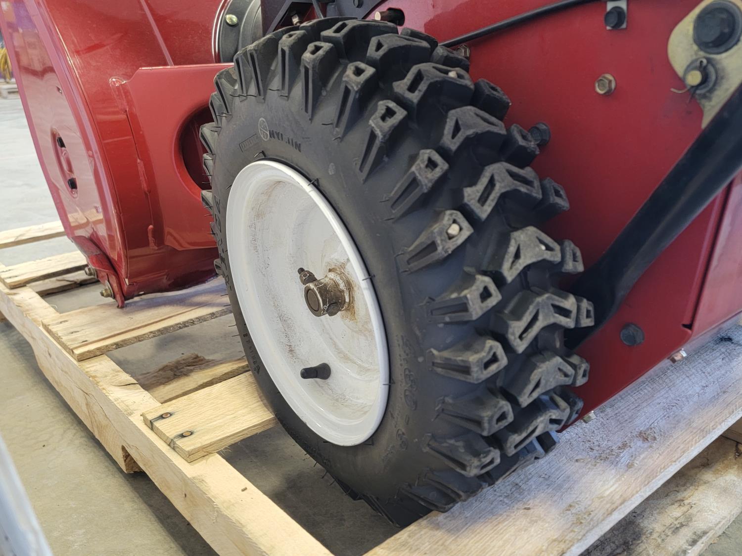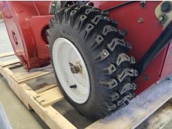 Right side auger damaged, flat left tire