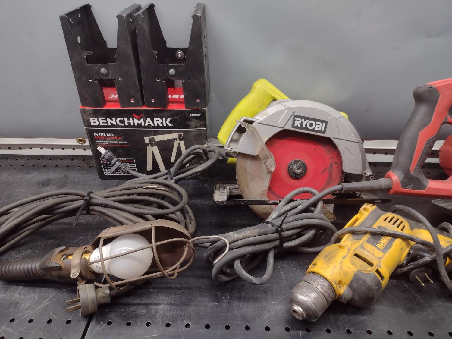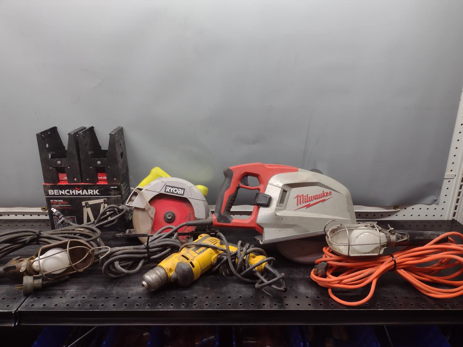5505 Trouble Lights, Saw Brackets, Drill and (2) Saws (Inoperable)