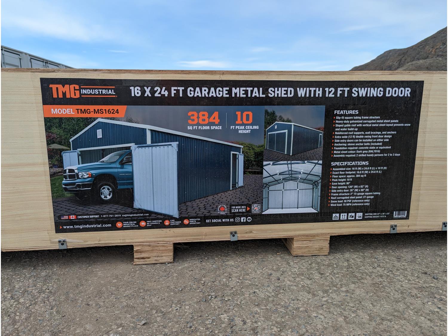 21 StanForge MS1624 16 Ft X 24 Ft Metal Garage Shed with Double Front Doors (Unused)