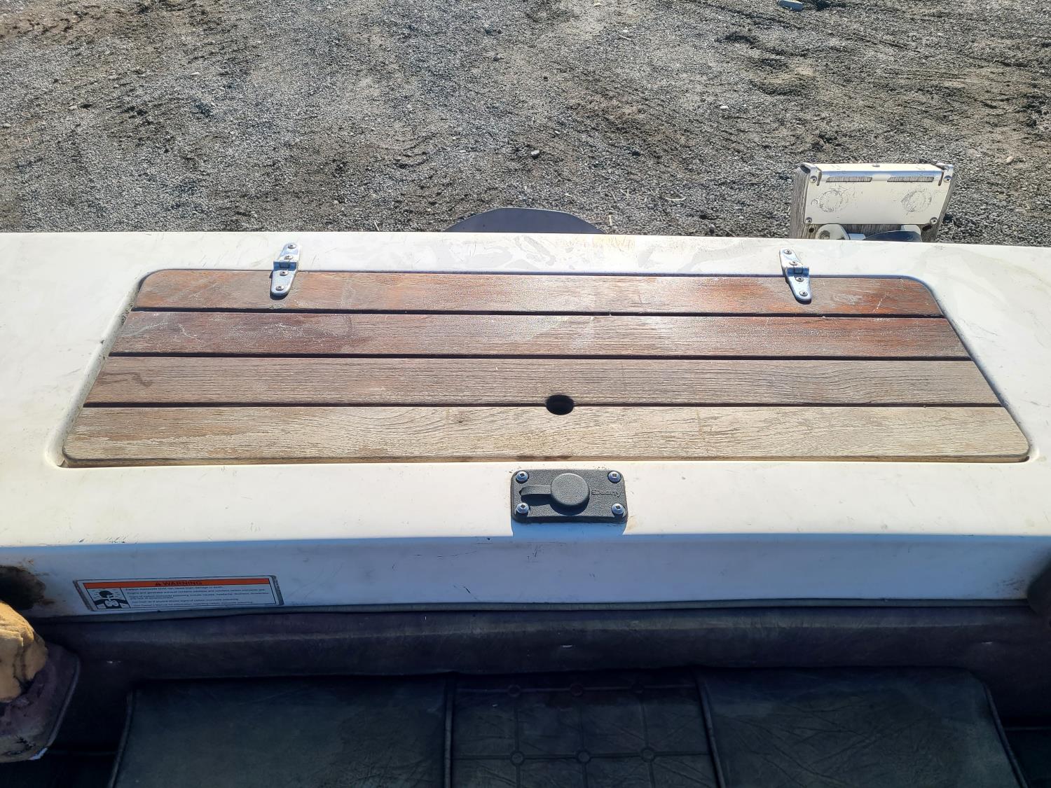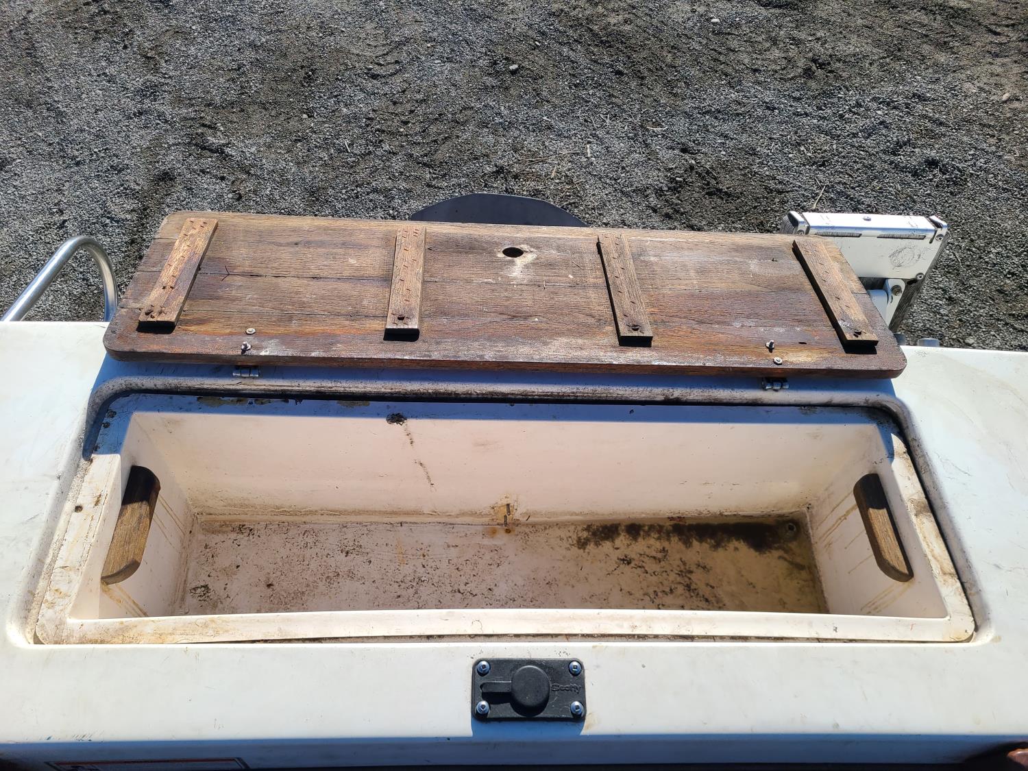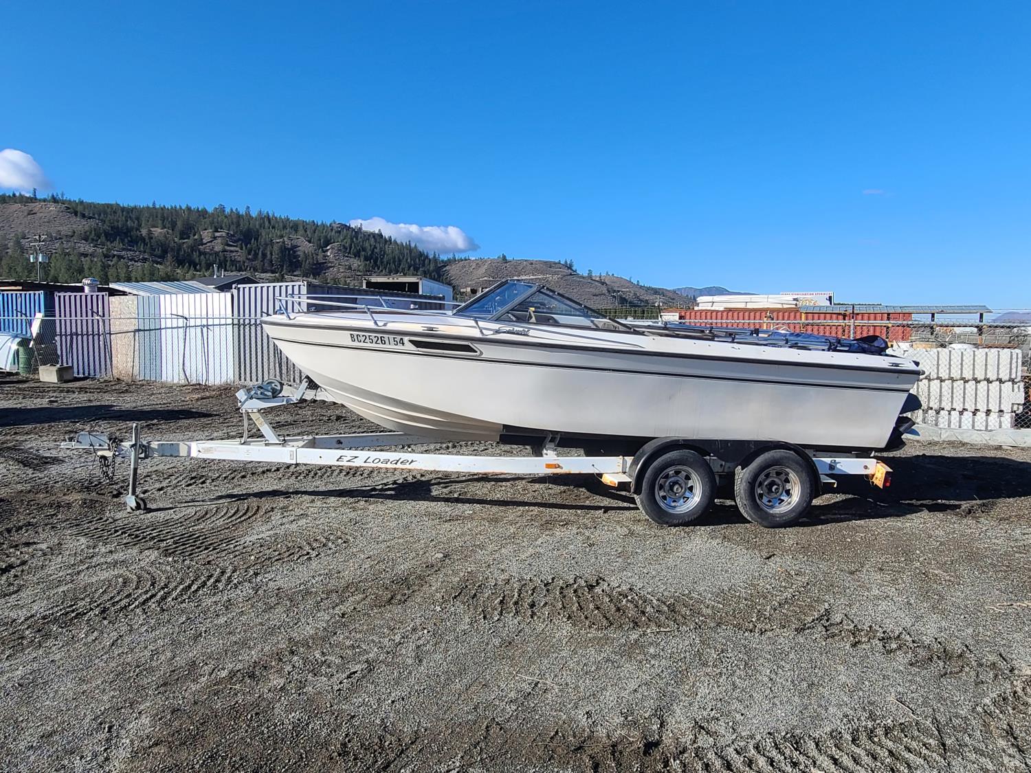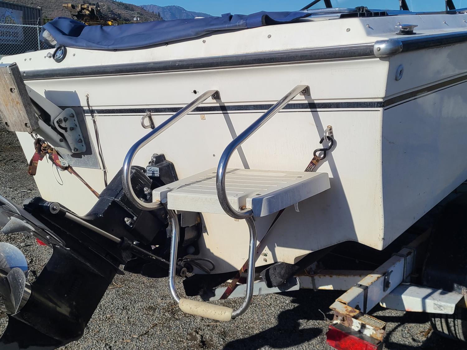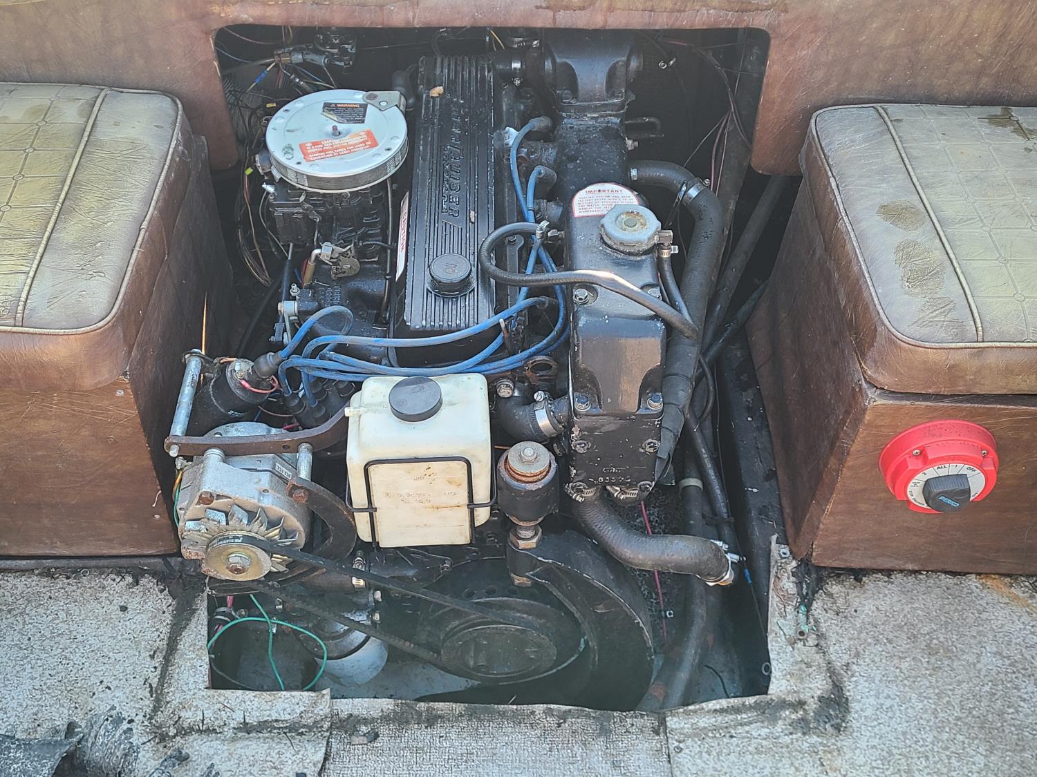 Mercruiser 4 cylinder with a Bimini top and a live well.