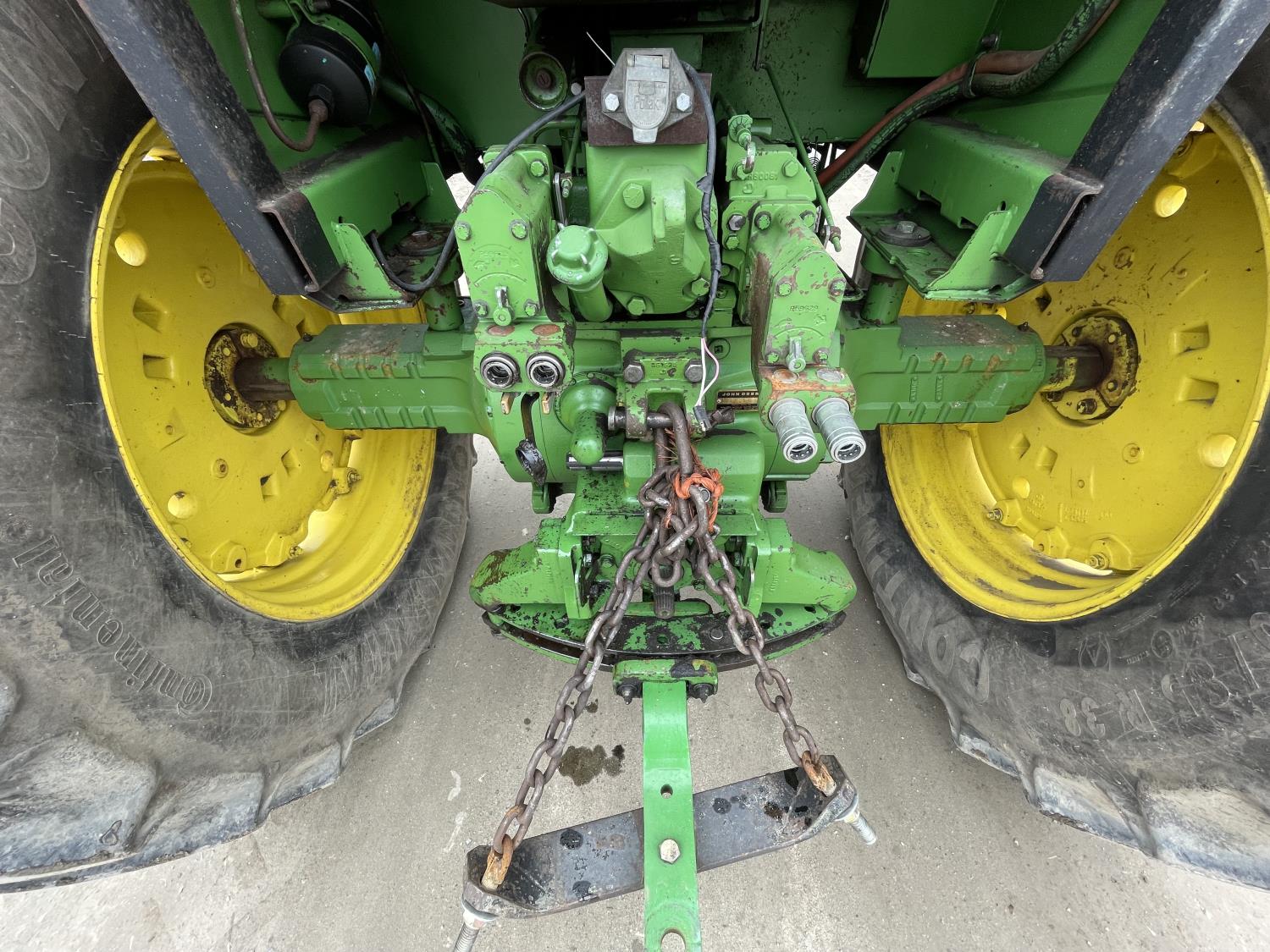 John Deere 6466TR-03 6 cylinder diesel engine, cab, ROPS, radio, 540/1000 PTO, 2 rear hydraulic outlets, 11.00-16 front tires, 460/85R38 rear tires