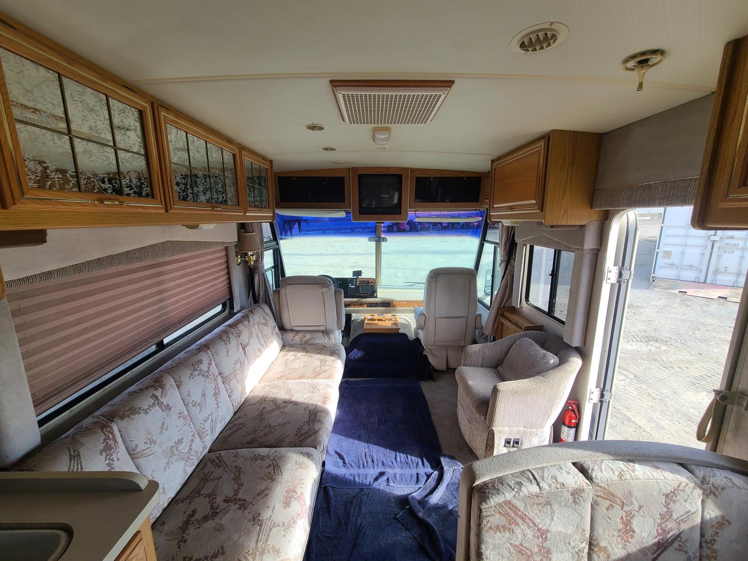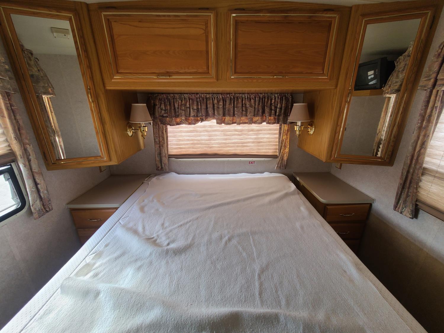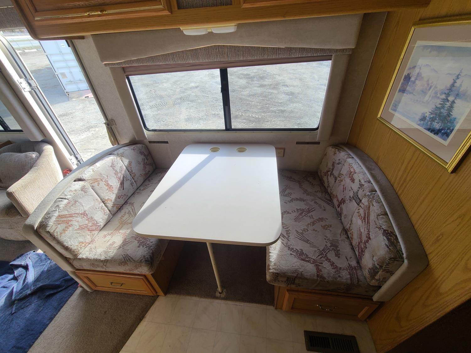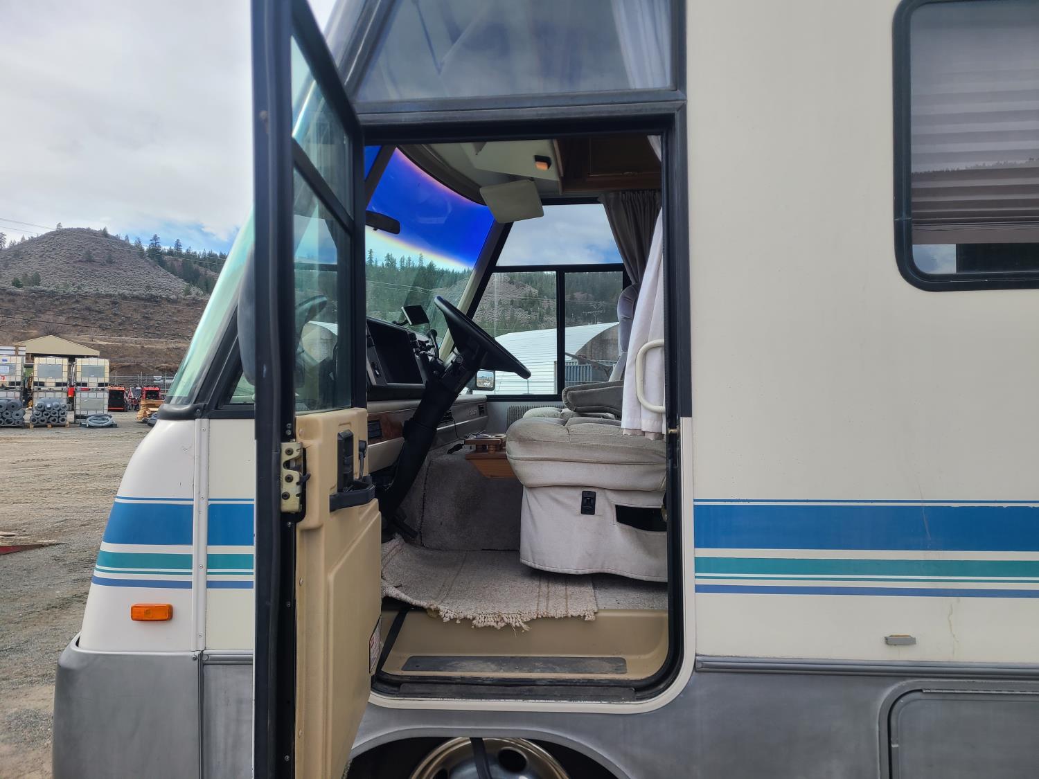 7.4L V8 OHV 16V gas engine, 295 liter fuel tank, drivers side door, automatic retracting steps, 18 Ft awning, dual A/C, Emerald plus Generator, outdoor shower, Mirror ext with defrost, tires are all 8R19.5
