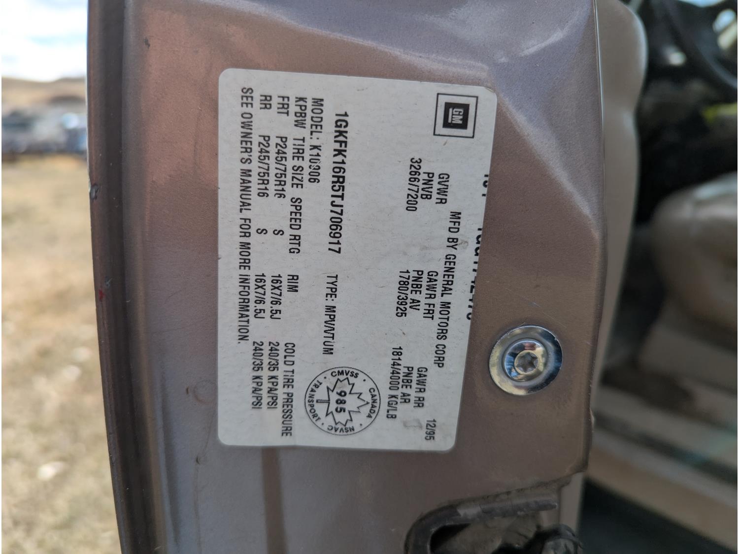 - 1GKFK16R5TJ706917