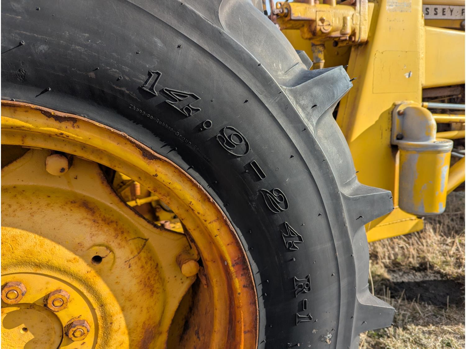 Loader, 50 inch bucket, Continental 2.2 L 45 HP, Gas engine, 34 PTO HP, 6 speed manual transmission, open station platform, 540 PTO, 3 point hitch, track weights, 7.5L-15 front tires, 14.9-24 rear tires, *(Rear rough cut mower in images not included)*