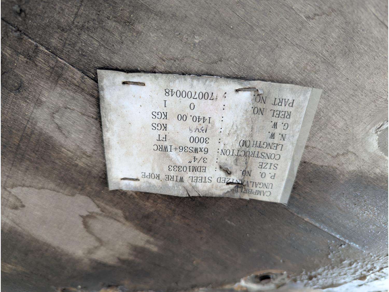 Construction Specs: 6 x WS36 + IWRC, total length unknown (roll was 3000 ft when new)