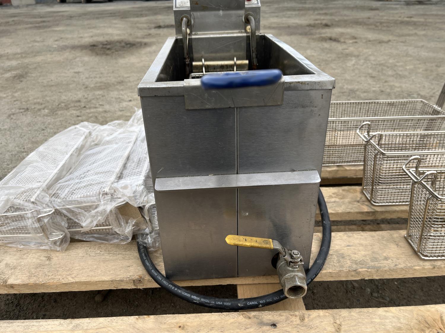 230 Volt, 5750 watt, 1 phase commercial deep fryer. (7) fryer baskets, lever drain valve. Serial # KDEF-00965