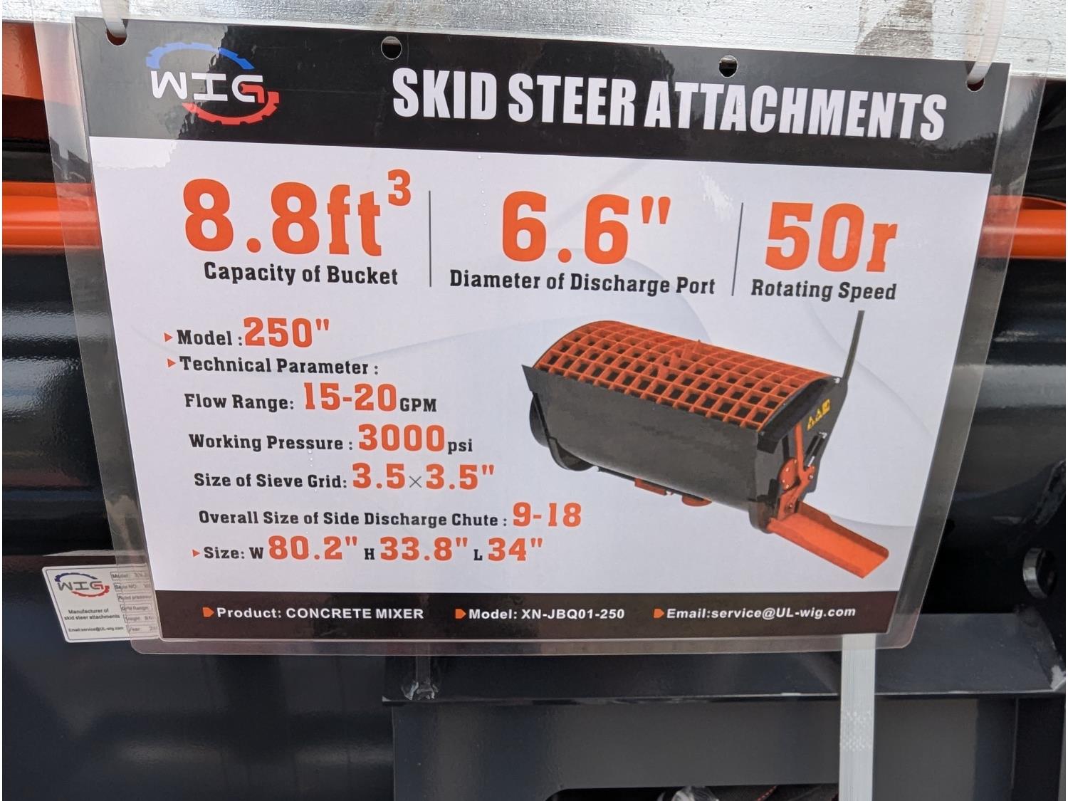 280 2025 WIG XN-JBQ01-250 Concrete Mixer - Skid Steer Attachment (Unused)