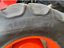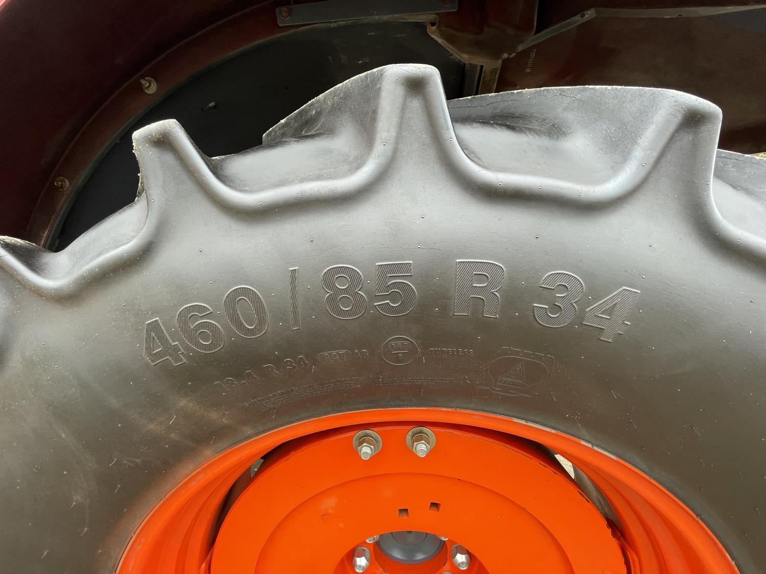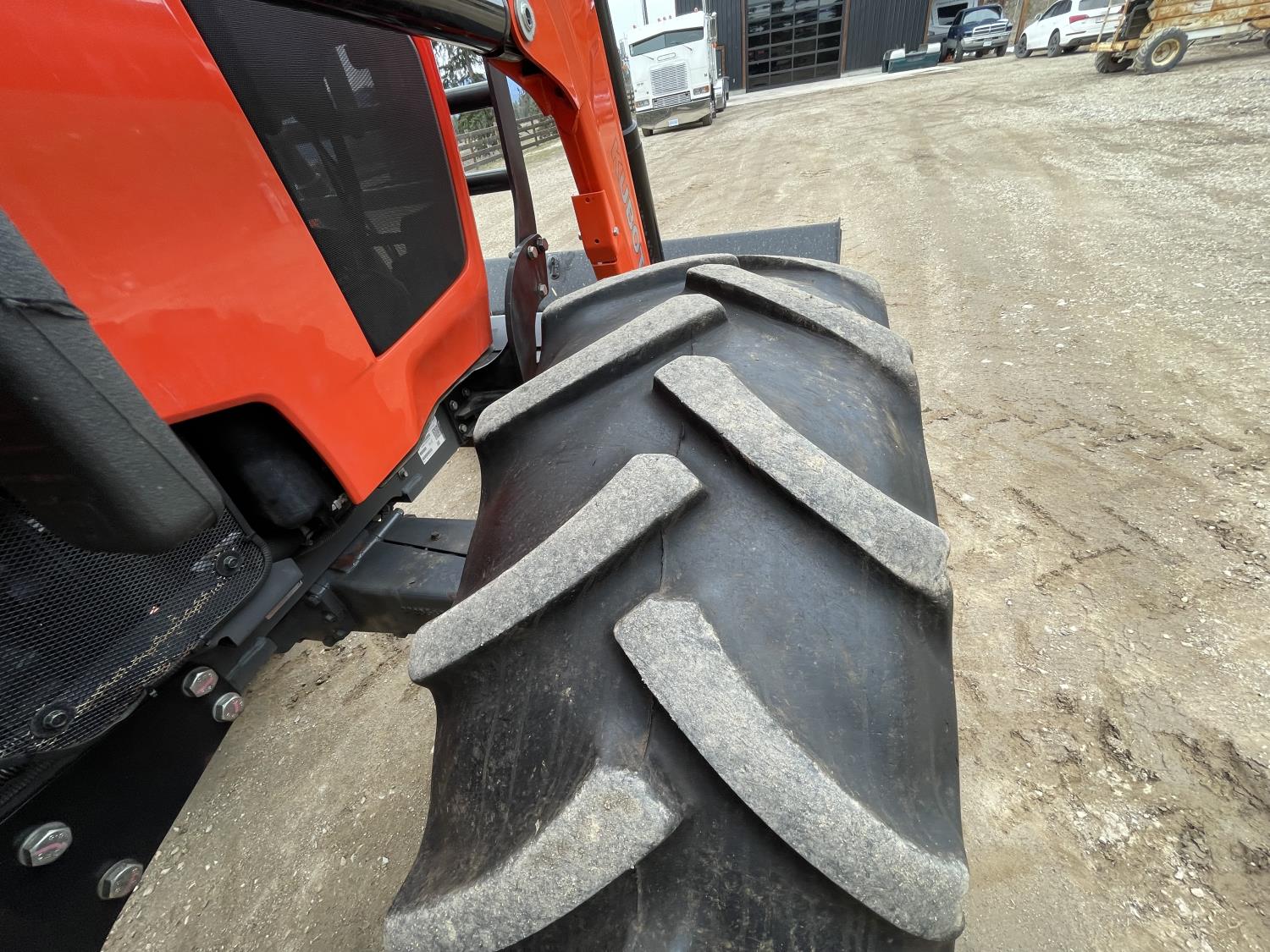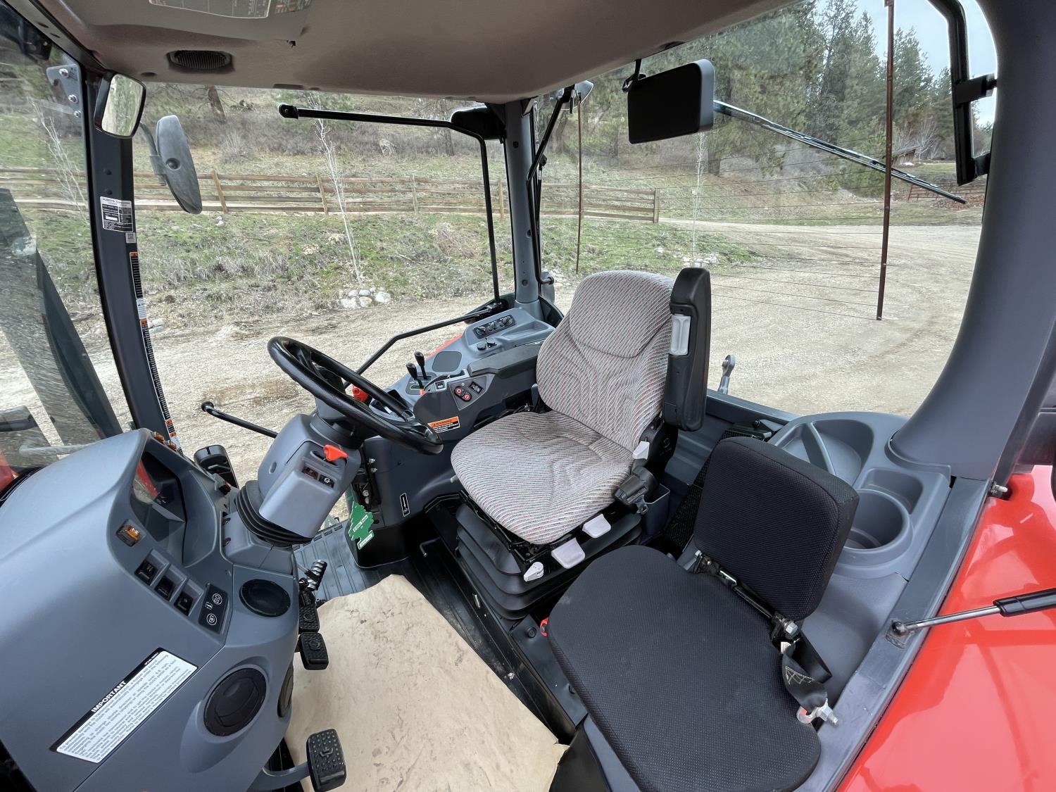 ALo M47 ride control loader, Kubota V3800-TI-CRS 230 cu in 4 cylinder 105 HP, diesel engine, 97 PTO HP, 24 speed power shift transmission, 19 GPM hydraulic pump, joystick with 3rd function, cab, ROPS, shuttle shift, A/C, radio, air ride seat, buddy seat, 540/1000 PTO, 3 point hitch, 2 rear hydraulic outlets, 340/85-24 front tires, 460/85-34 rear tires, joystick with 3rd function