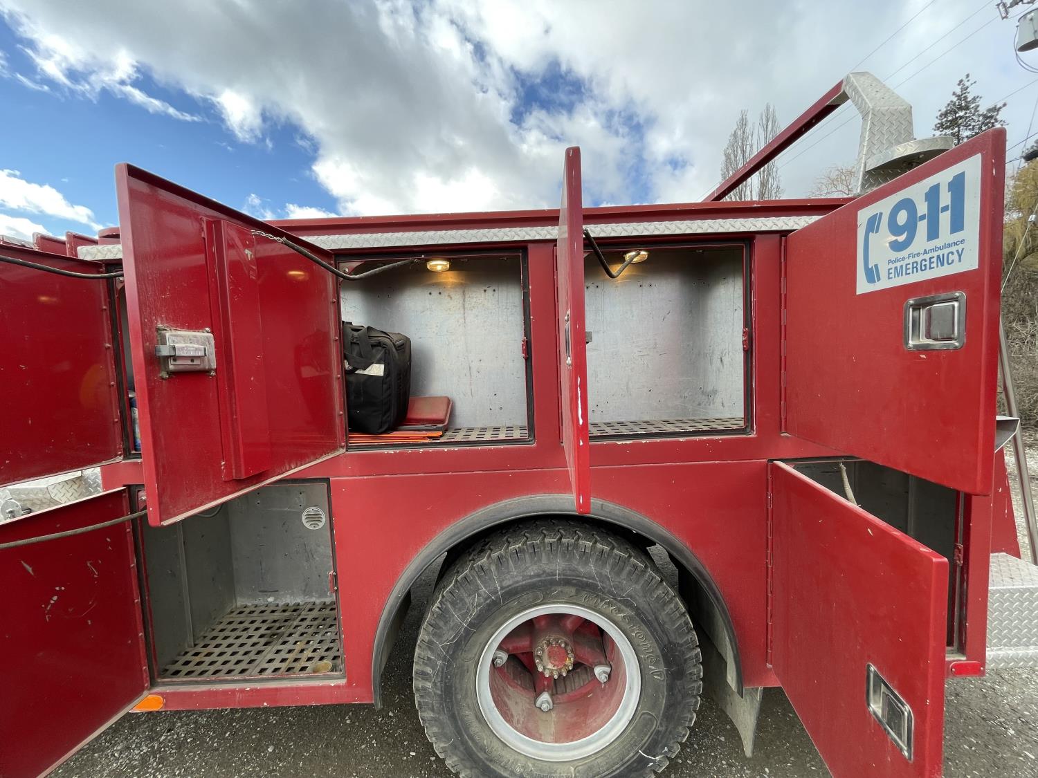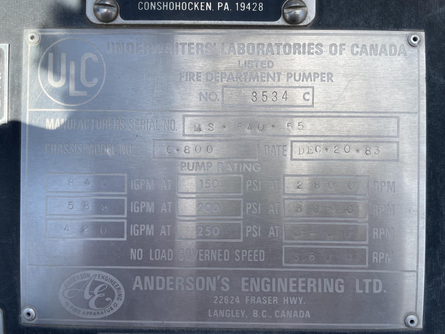 Ford Gasoline engine, Ford AT-540 automatic transmission, radio, beacons, Anderson hydraulic pump, Pumper style , 10.00X20.00 front tires, 10.00X20.00 rear tires