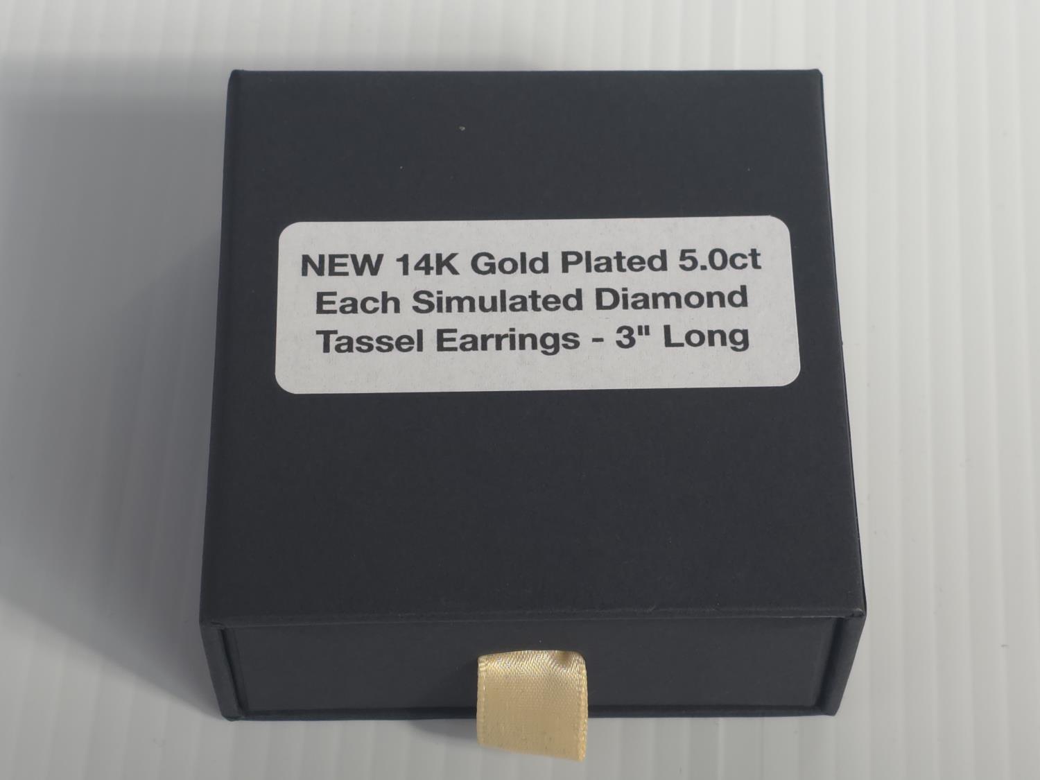 5013 Smartlife 14K Gold Plated 5.0 Ct Each Simulated Diamond Tassel Earrings (Unused)