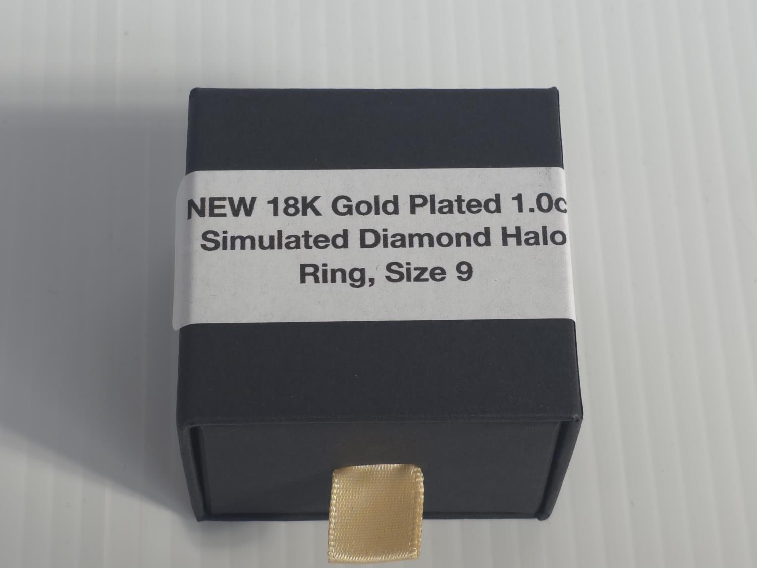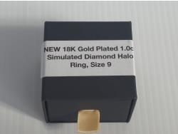 5011 Smartlife 18K Gold Plated 1.0 Ct Simulated Diamond Halo Ring - Size 9 (Unused)