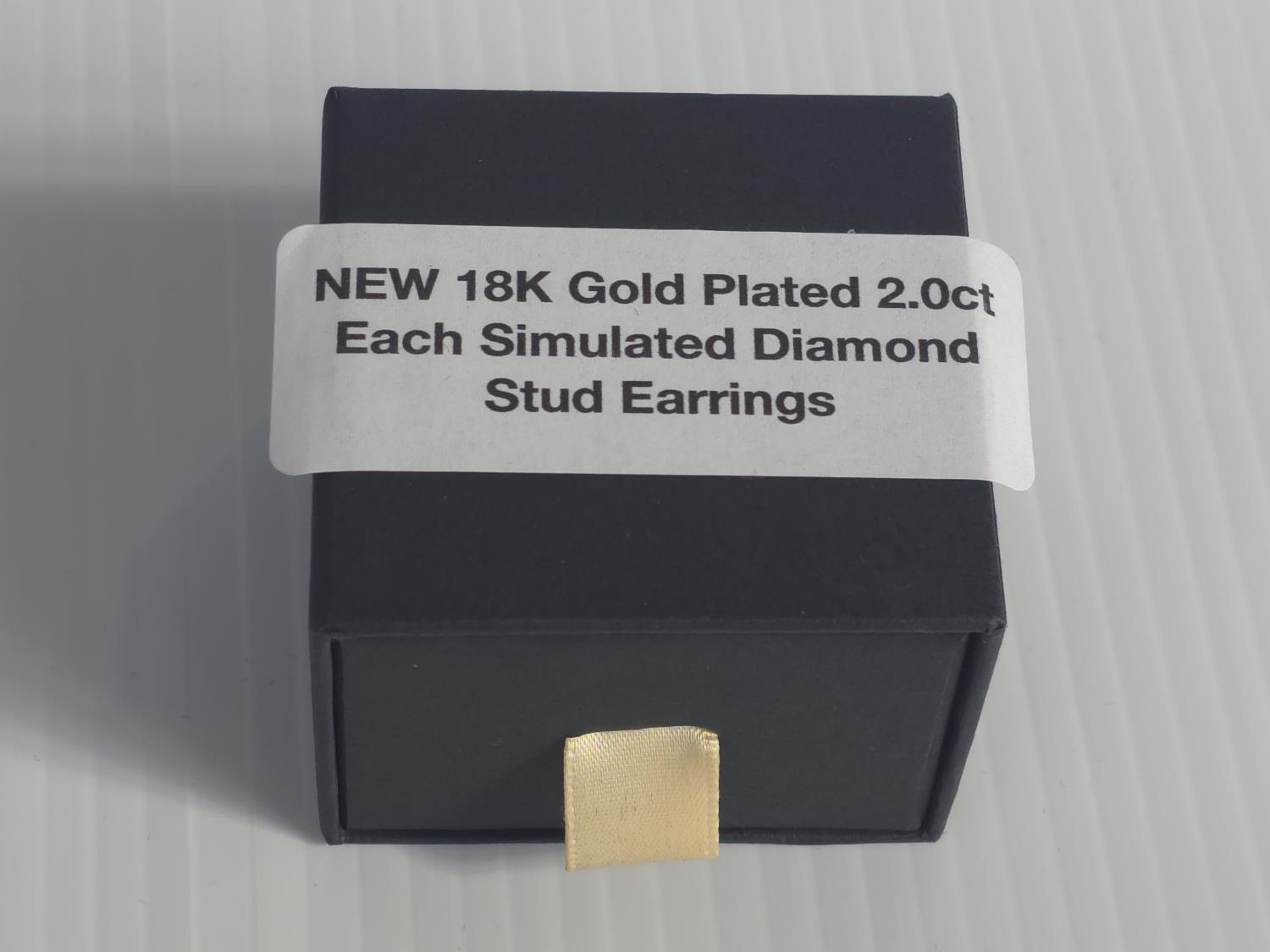 5009 Smartlife 18K Gold Plated 2.0 Ct Each Simulated Diamond Stud Earrings (Unused)