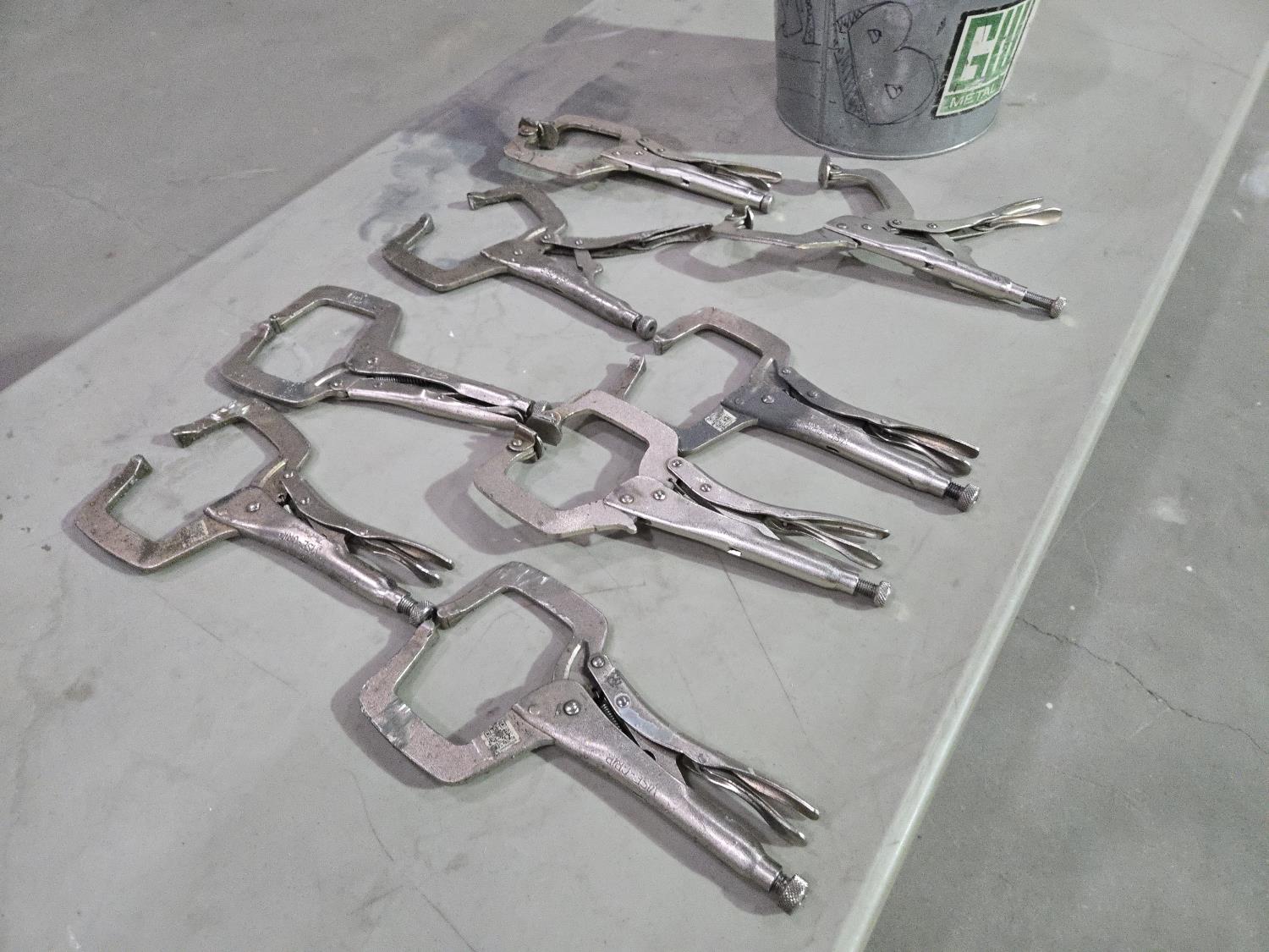 5878 (8) Vise Grip Style Welding Clamps & Galvanized Pail