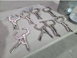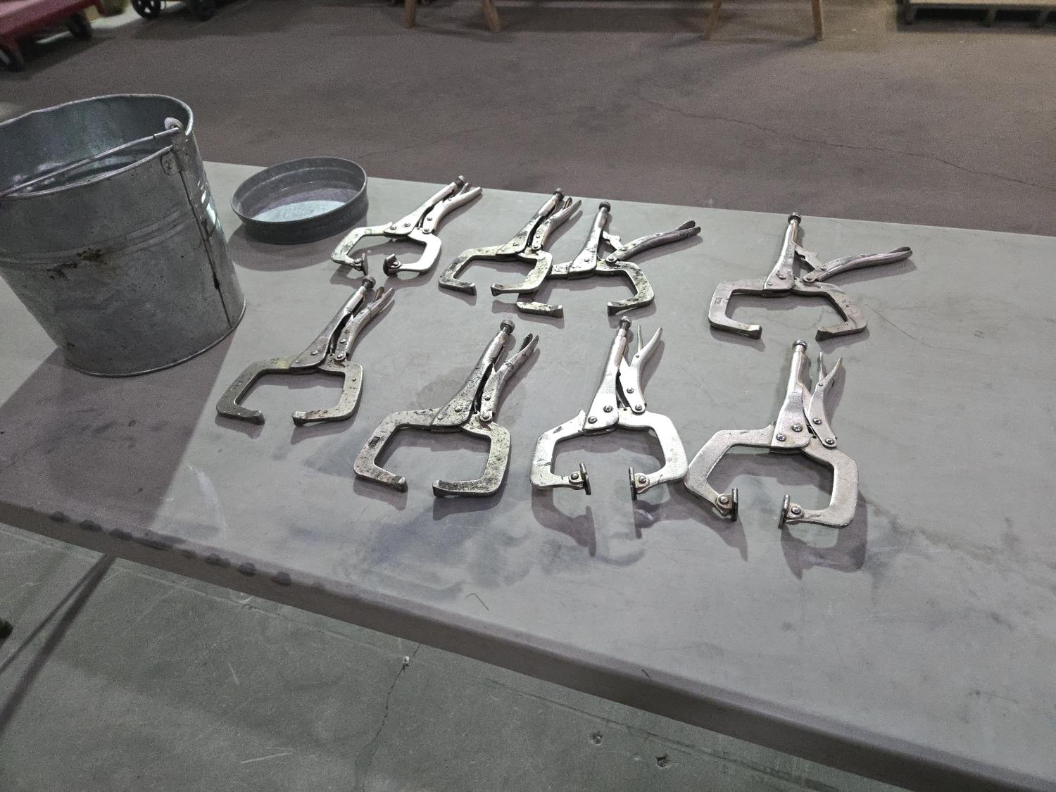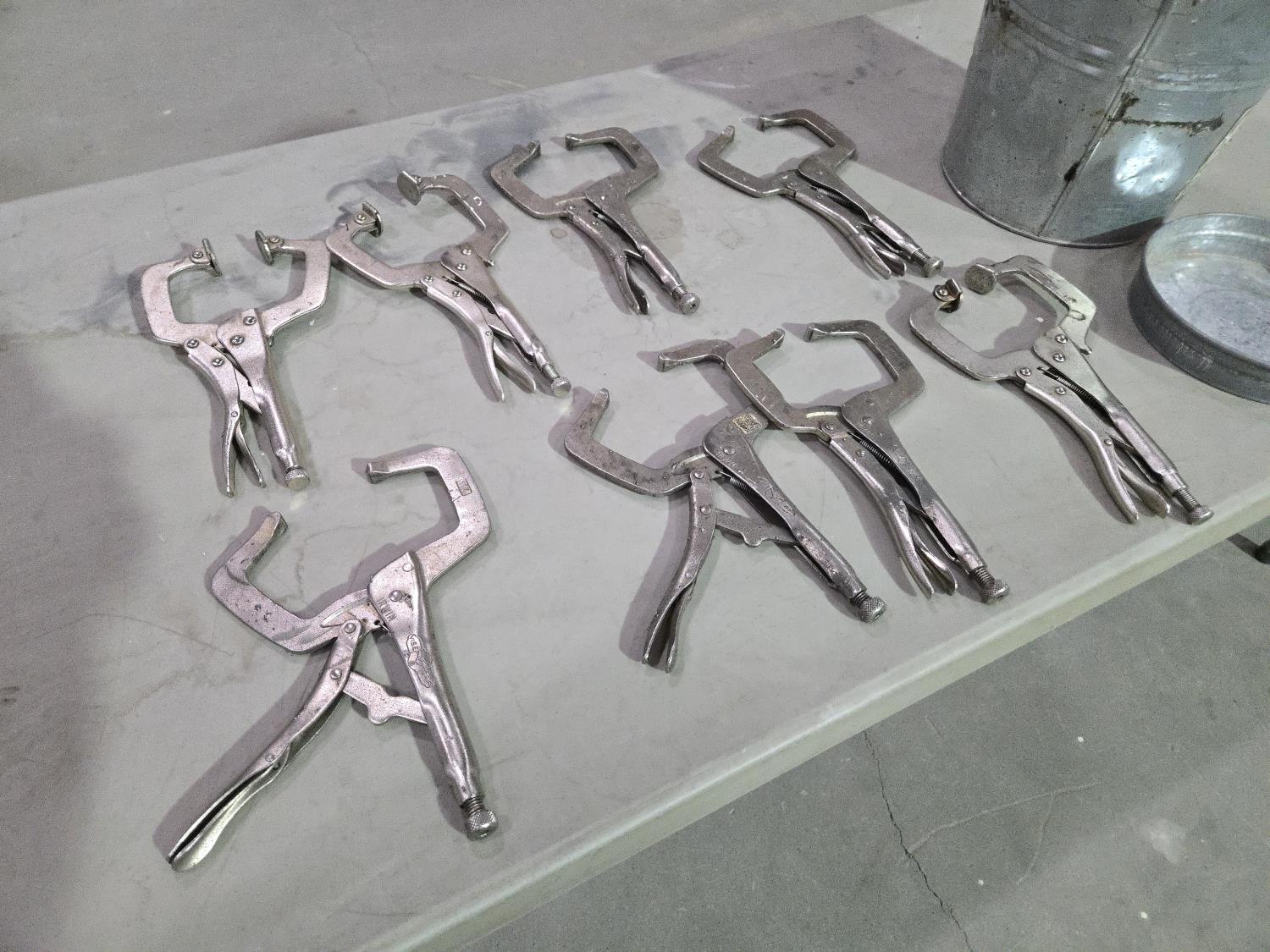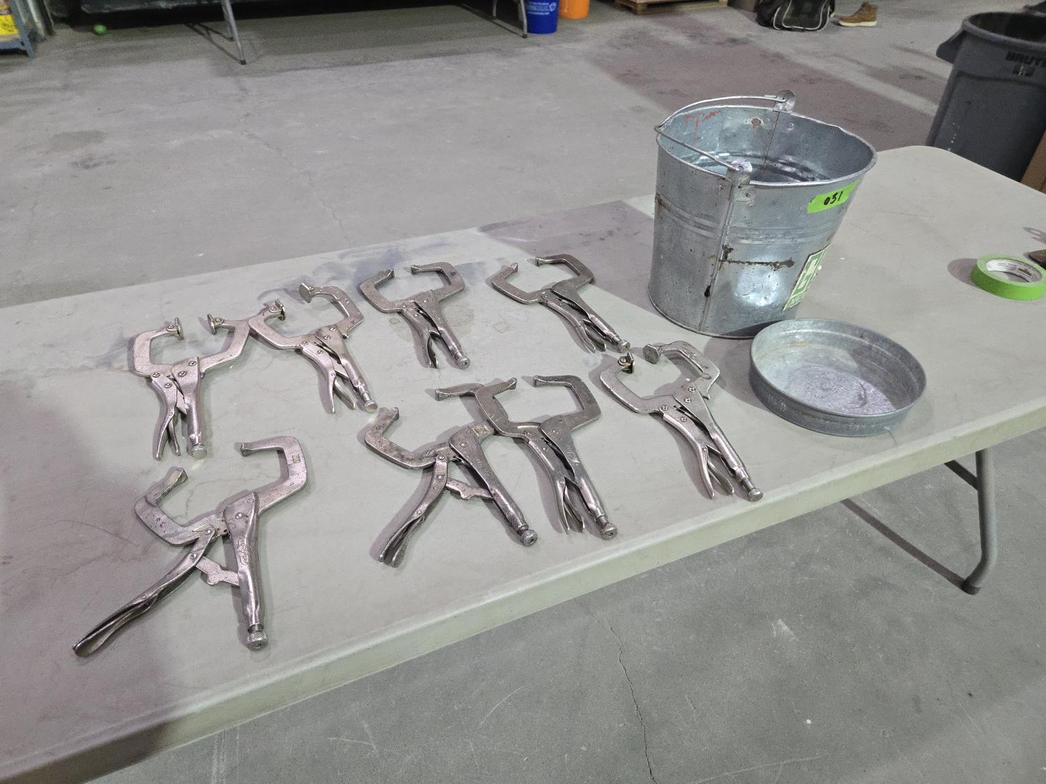 5873 (8) Welding Vise Grip Style Clamps, (1) Galvanized Bucket