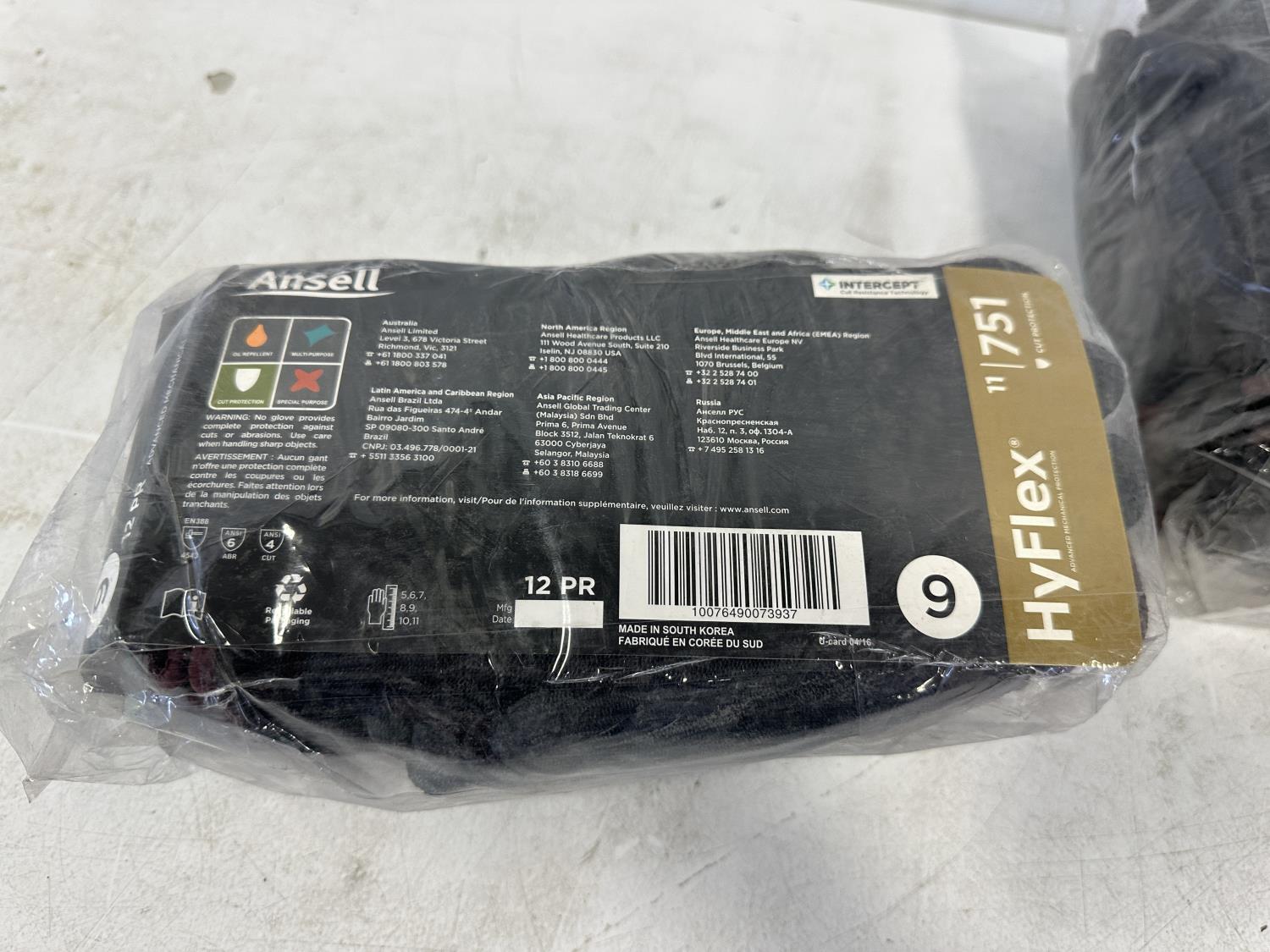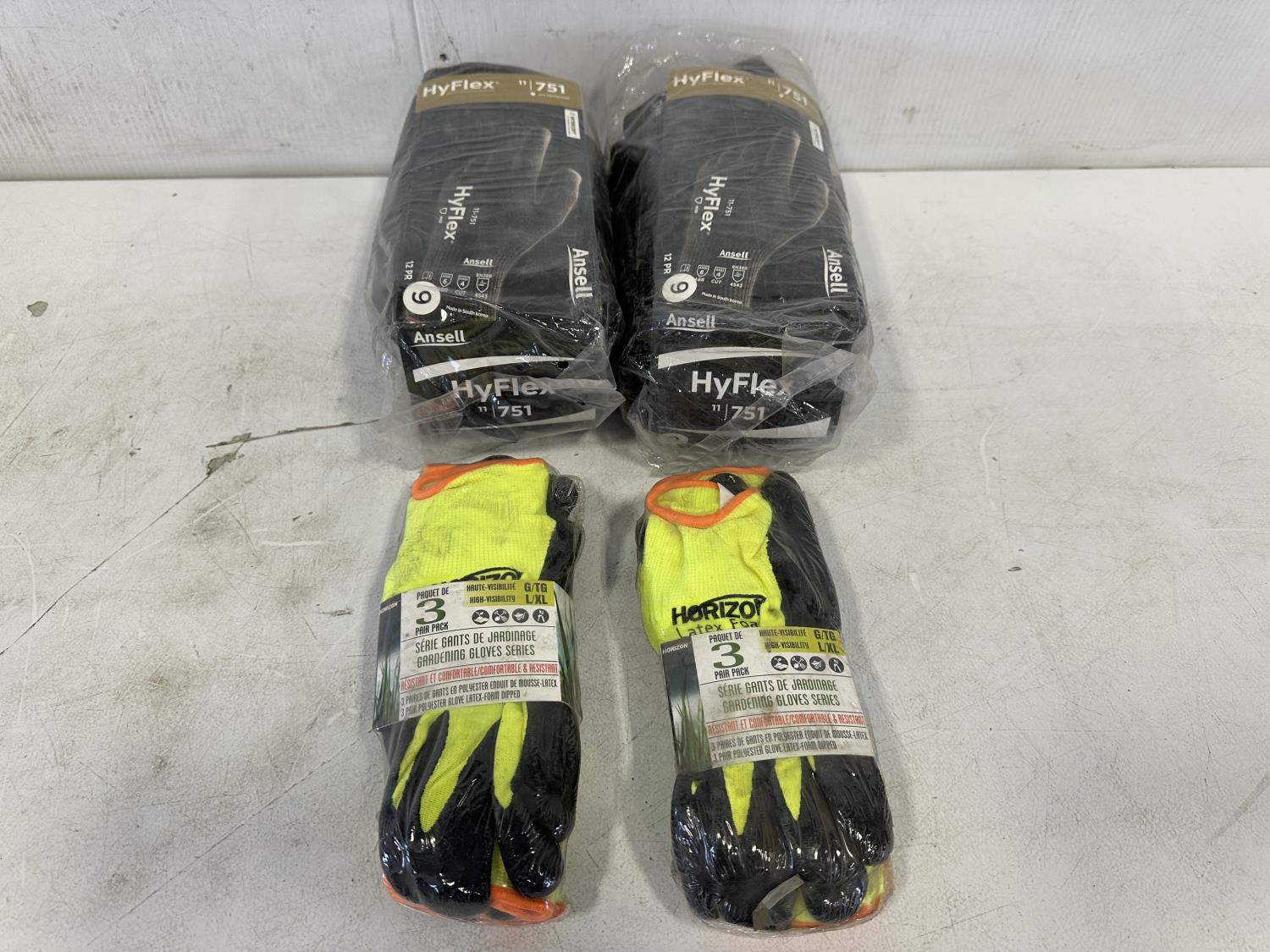 (6) pairs size L/XL polyester gloves, (24) pairs size 9 HyFlex gloves