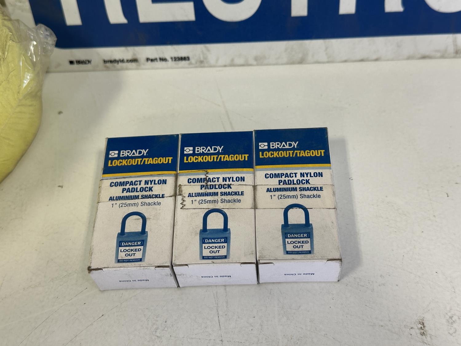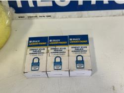 Restroom sign, jumbo sponges, (3) Brady lockout/tagout padlocks, (2) keyed entry door knobs