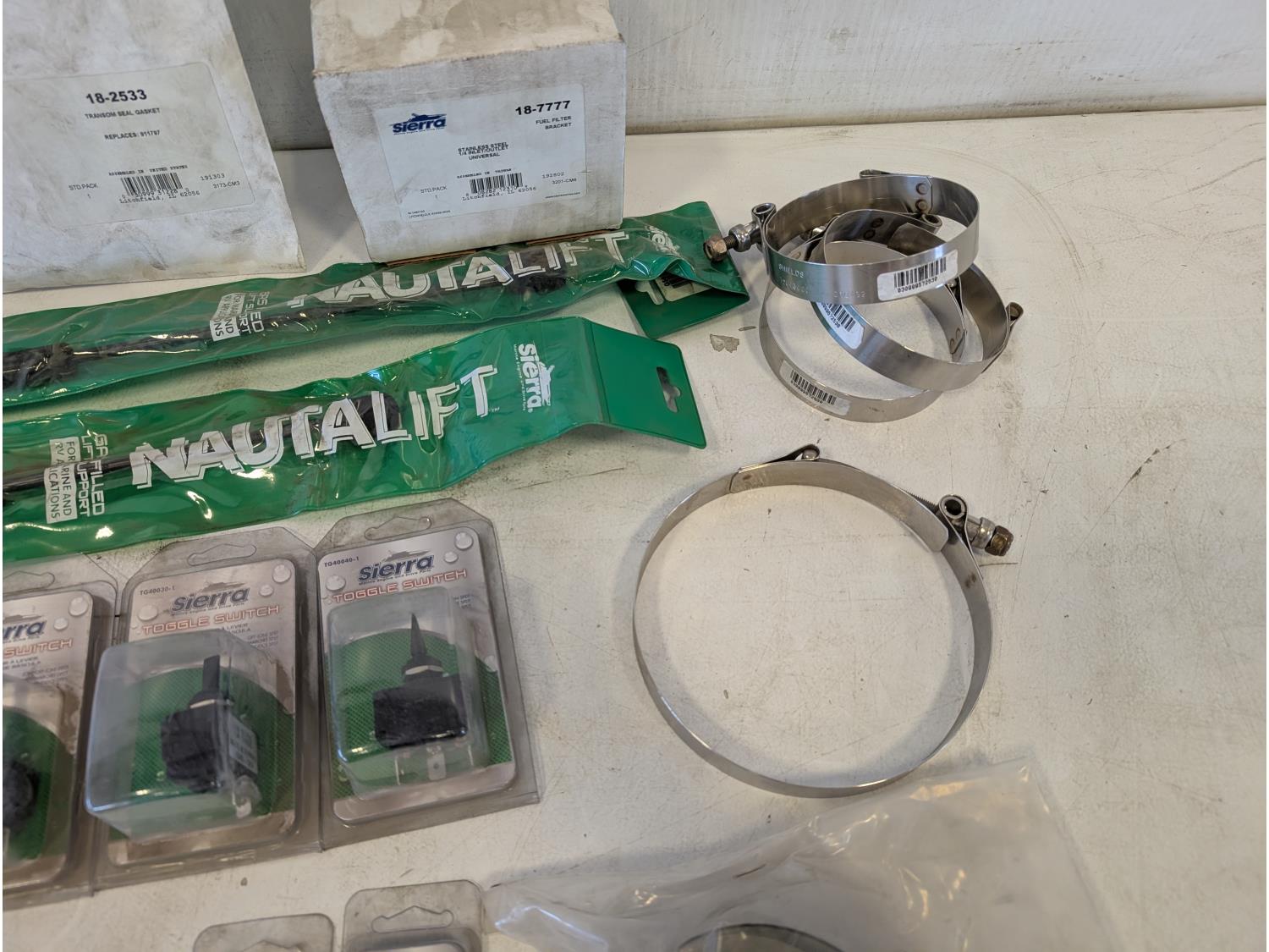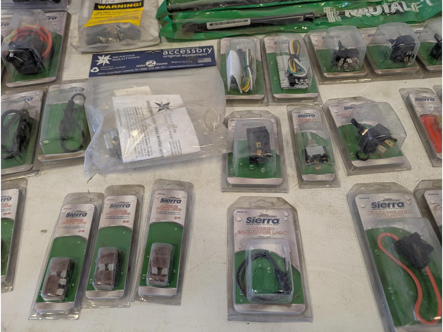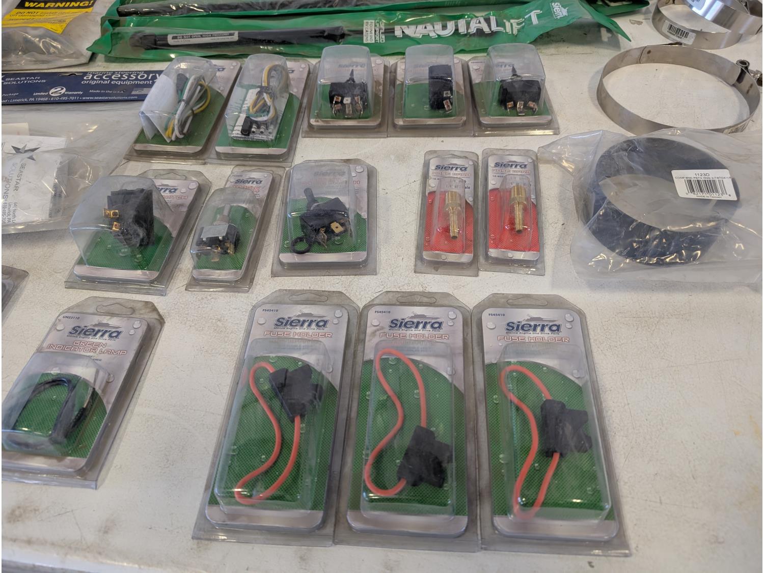Carb kits, bilge pump hose, trolling motor plugs, marine fuses, rocker and toggle switches