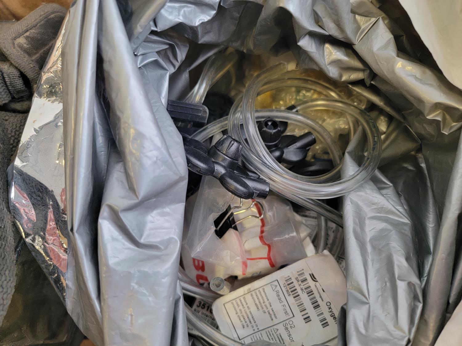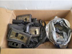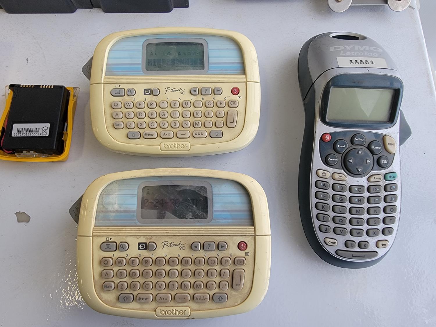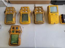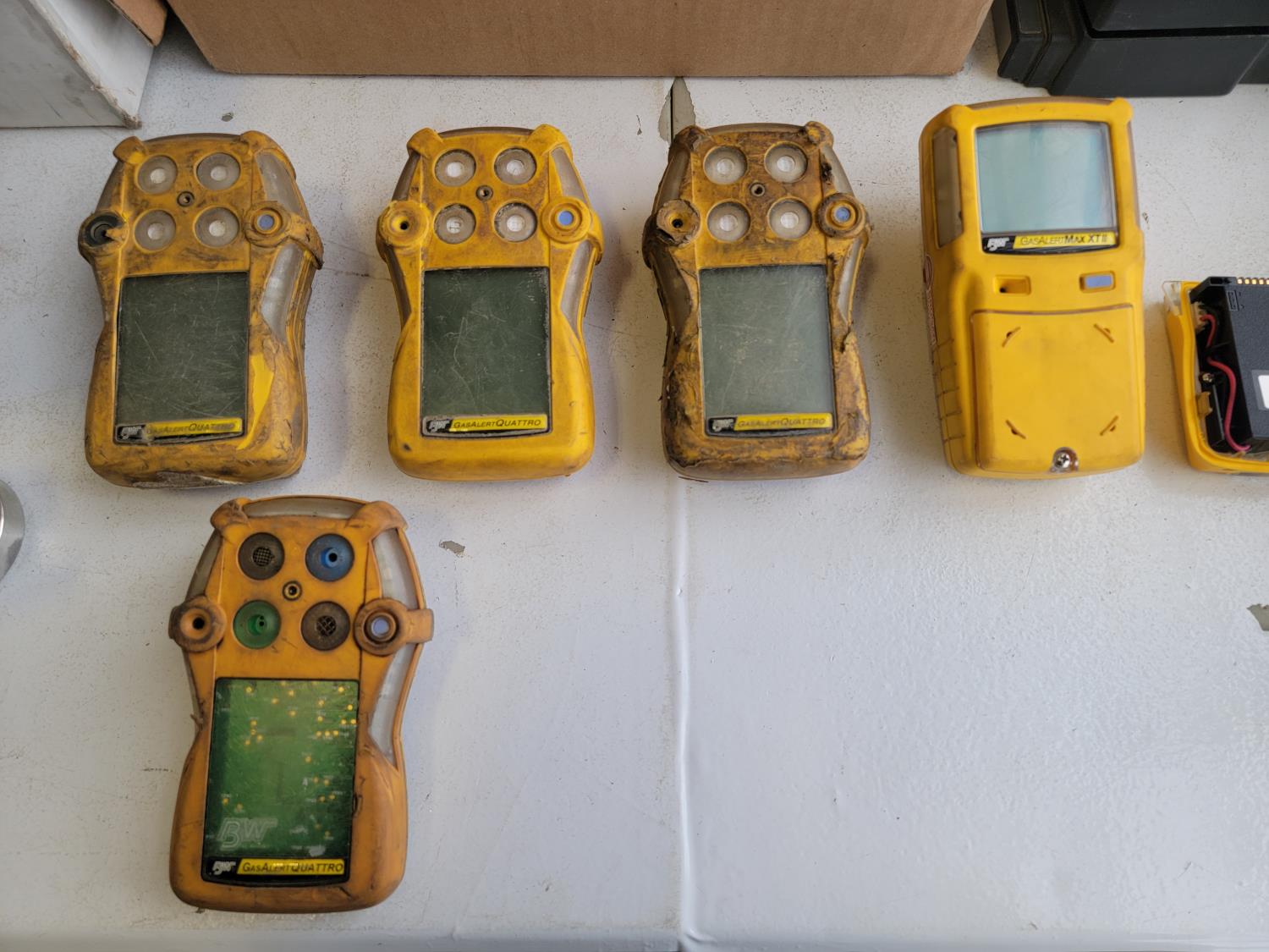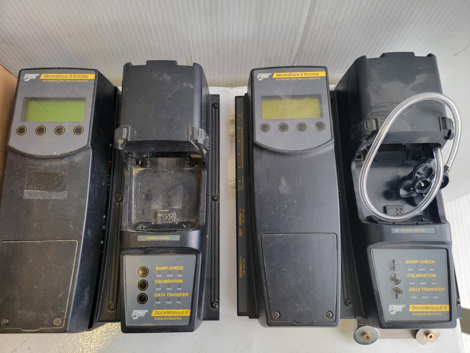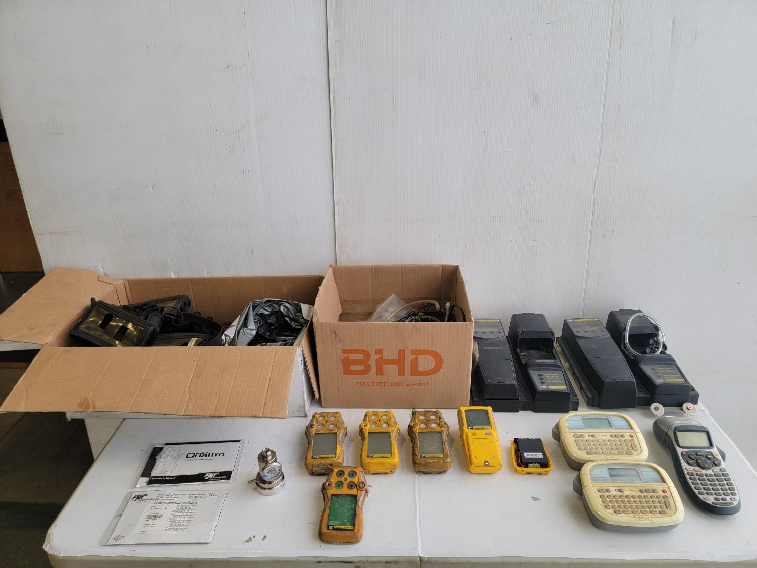 Gas detectors, microdock base modules, (3) handheld label maker, chargers