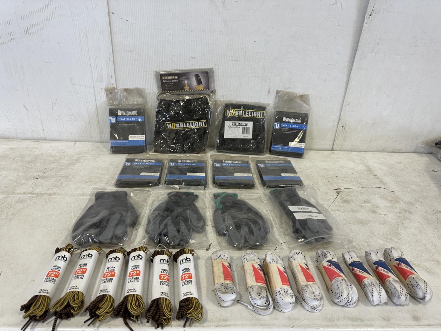 (2) Wobblelight reflector shields, (6) heat cloths, (4) pairs of gloves, (14) sets of 72 inch laces