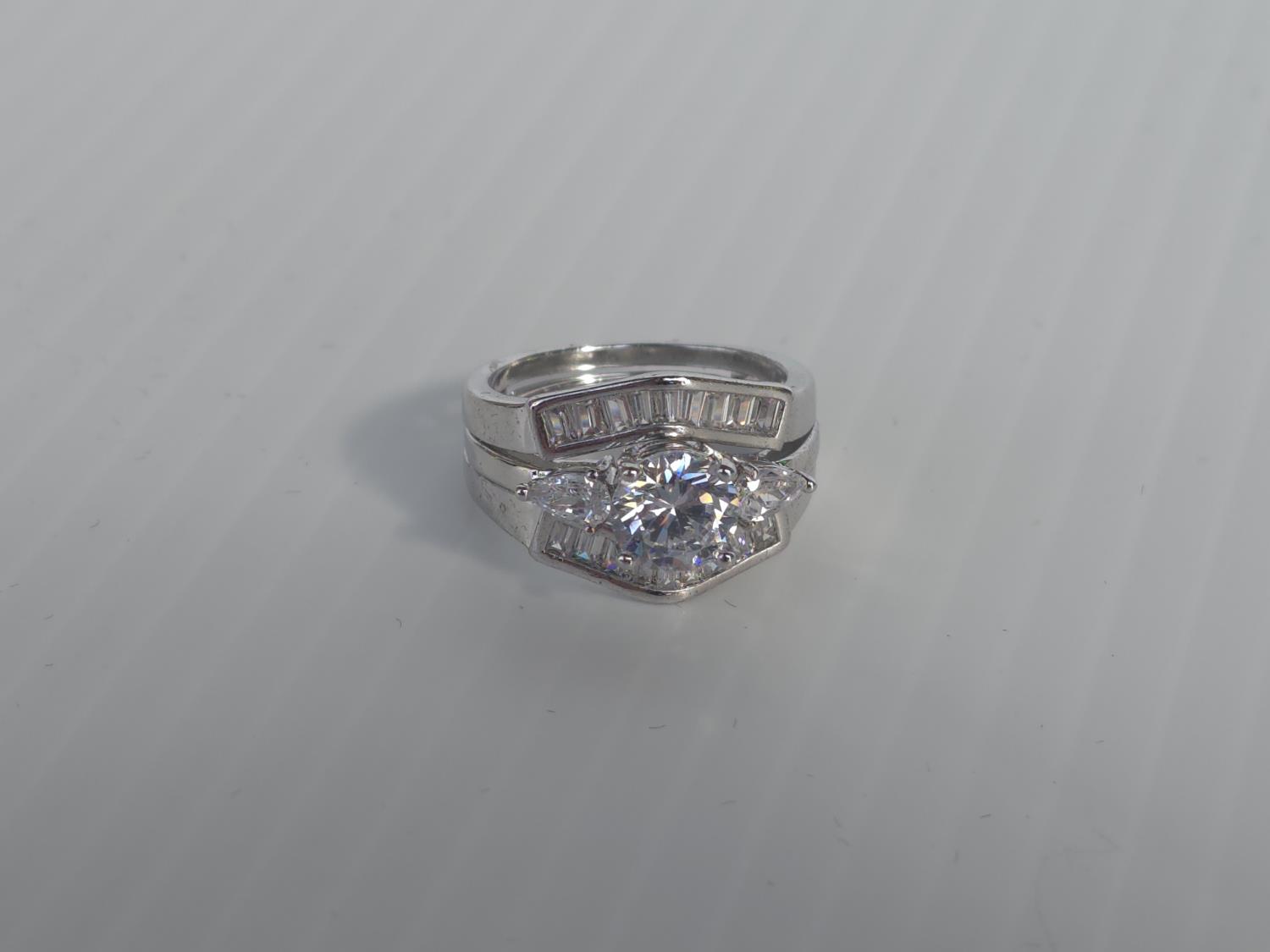 5012 Smartlife Platium Plated 1.0 Ct Simulated Diamond Trinity Ring Set - Size 7 (Unused)