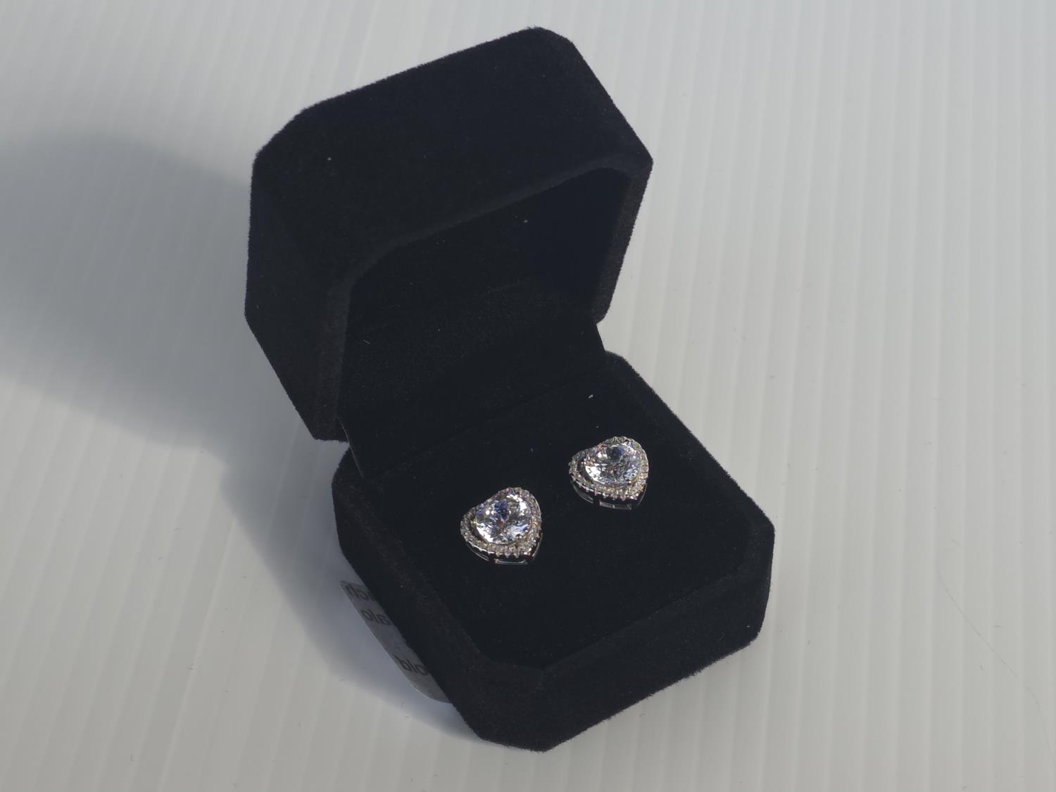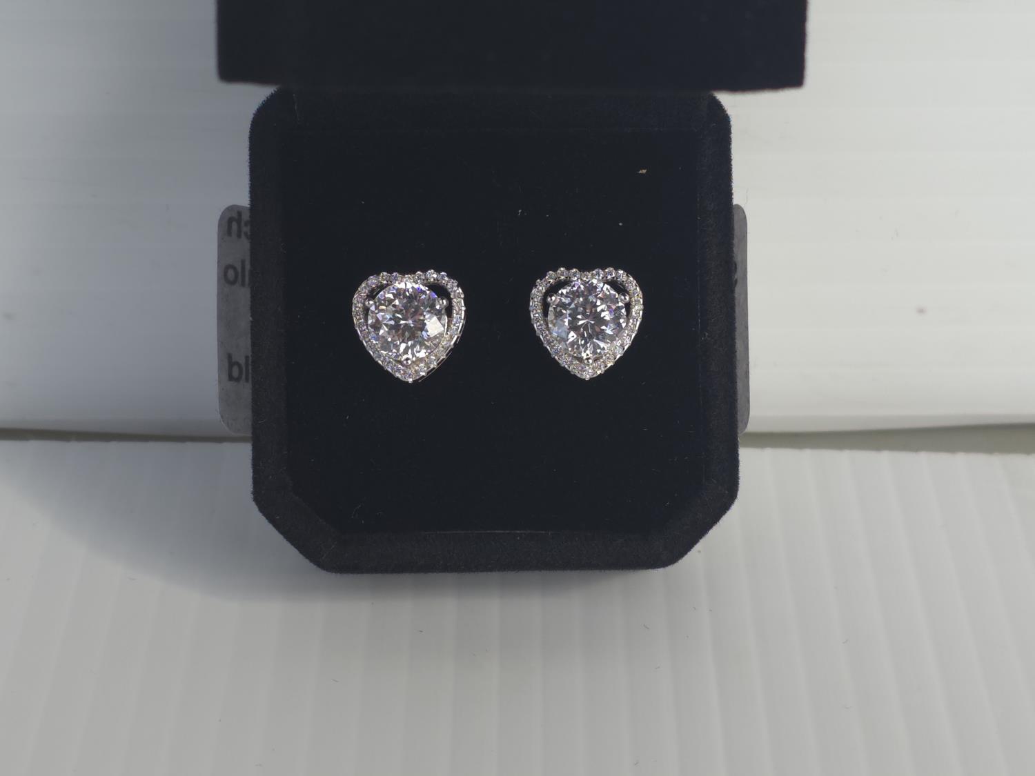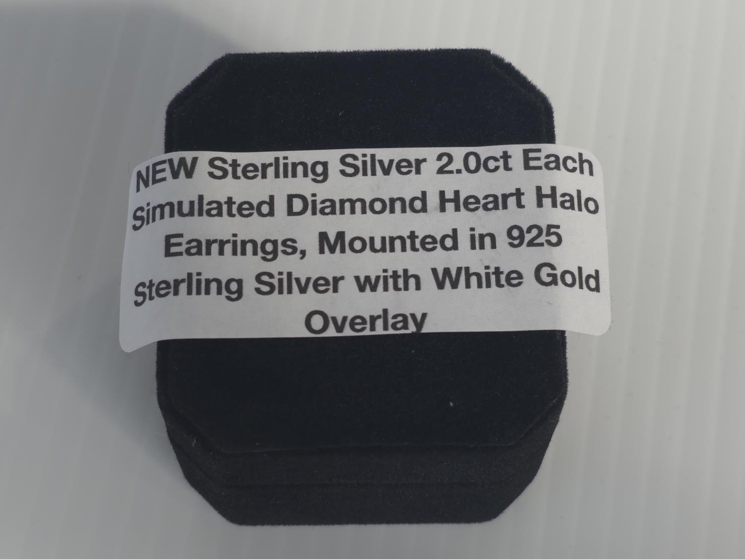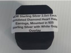 5005 Smartlife Sterling Silver 2.0 Ct Each Simulated Diamond Heart Halo Earrings (Unused)