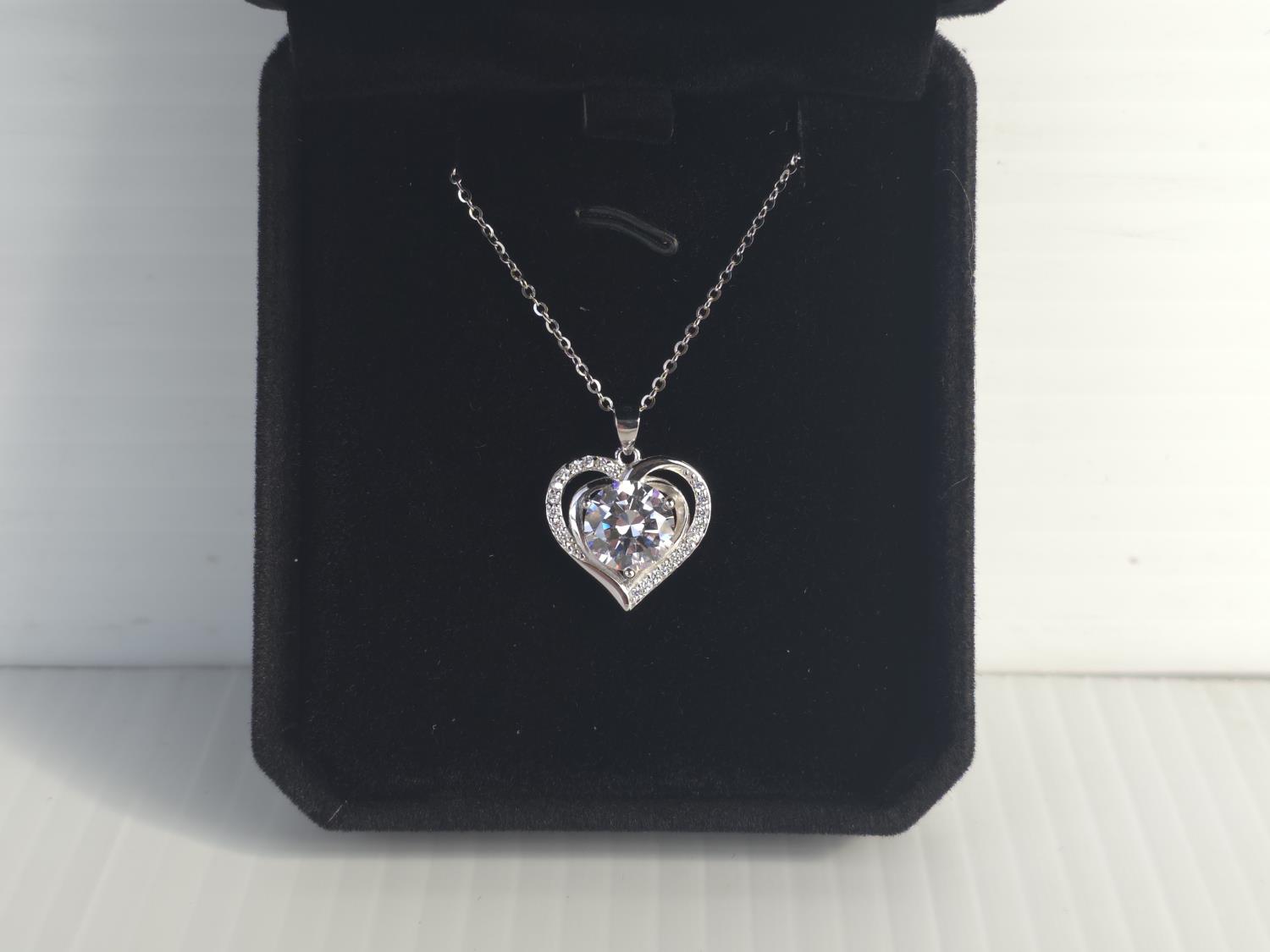 5006 Smartlife Sterling Silver 3.0 Ct Simulated Diamond Heart Necklace (Unused)