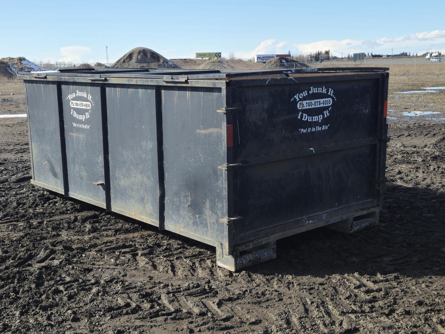124 10 Yard Roll Off Bin with Hinged Steel Mesh Lid
