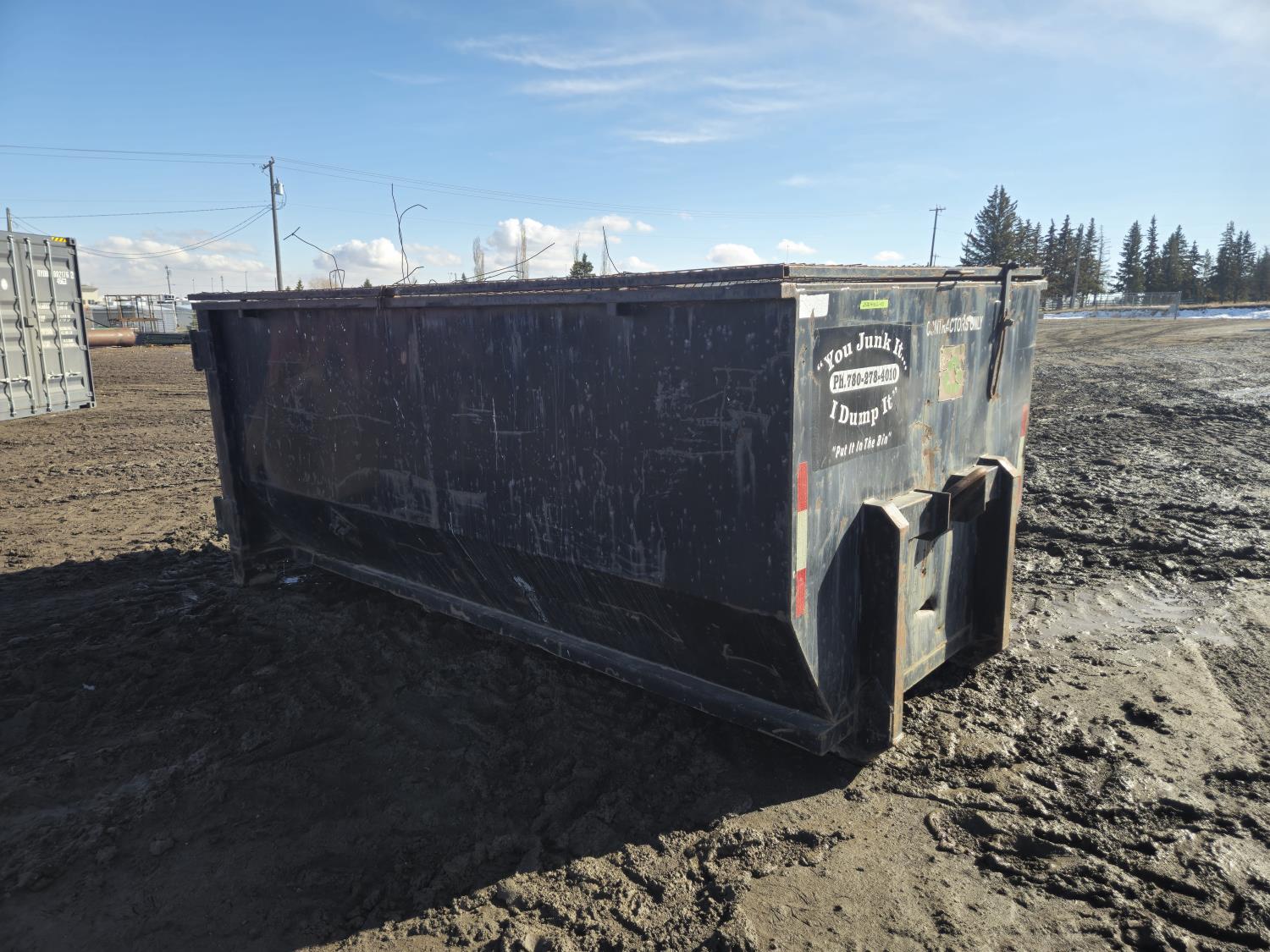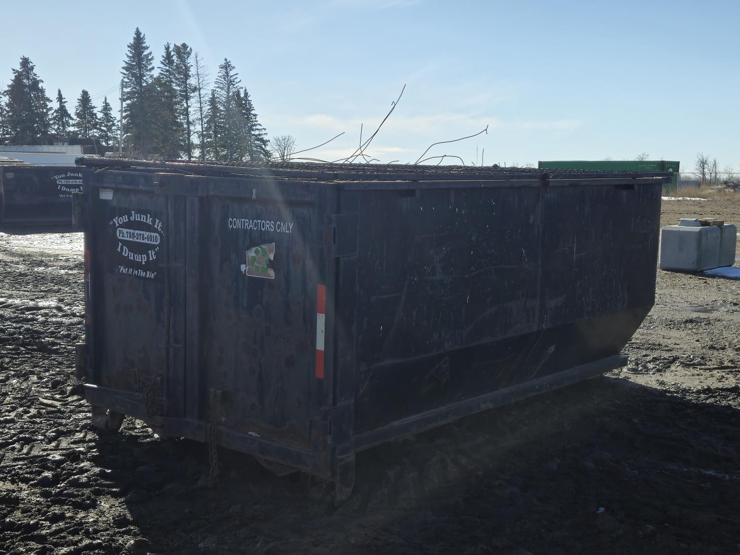 129 12 Yard Roll Off Bin with Hinged Steel Mesh Lid