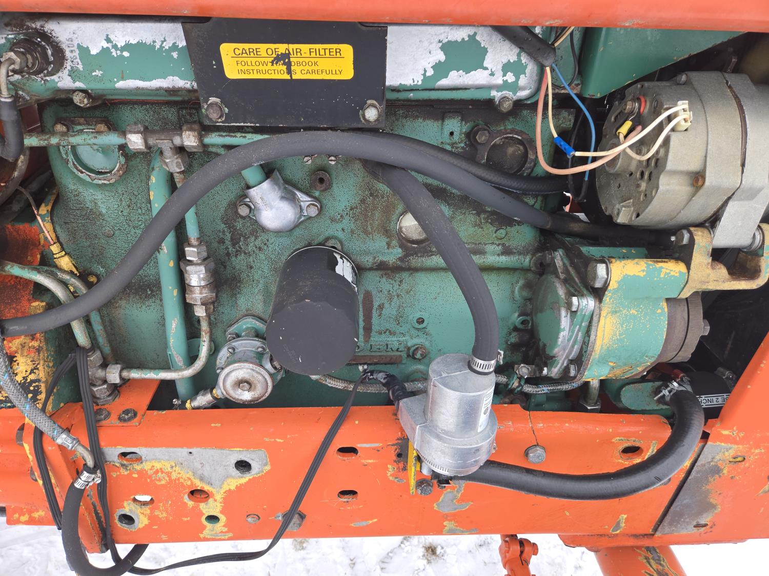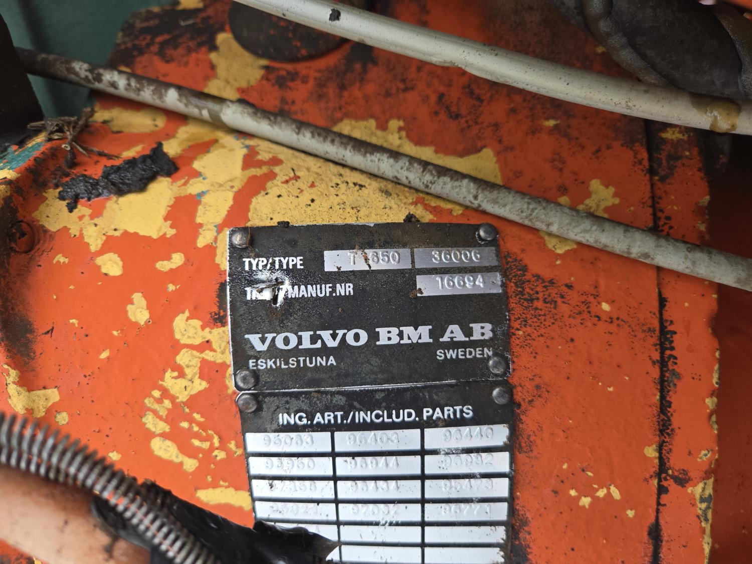 Volvo 4.2 4 cylinder 73 HP, diesel engine, 16 speed partial power shift transmission, cab, circulating block heater, 540 PTO, 2 rear hydraulic outlets, rear wheel weights, 7.50-18 front tires, 18.4-30 rear tires, Parts manual