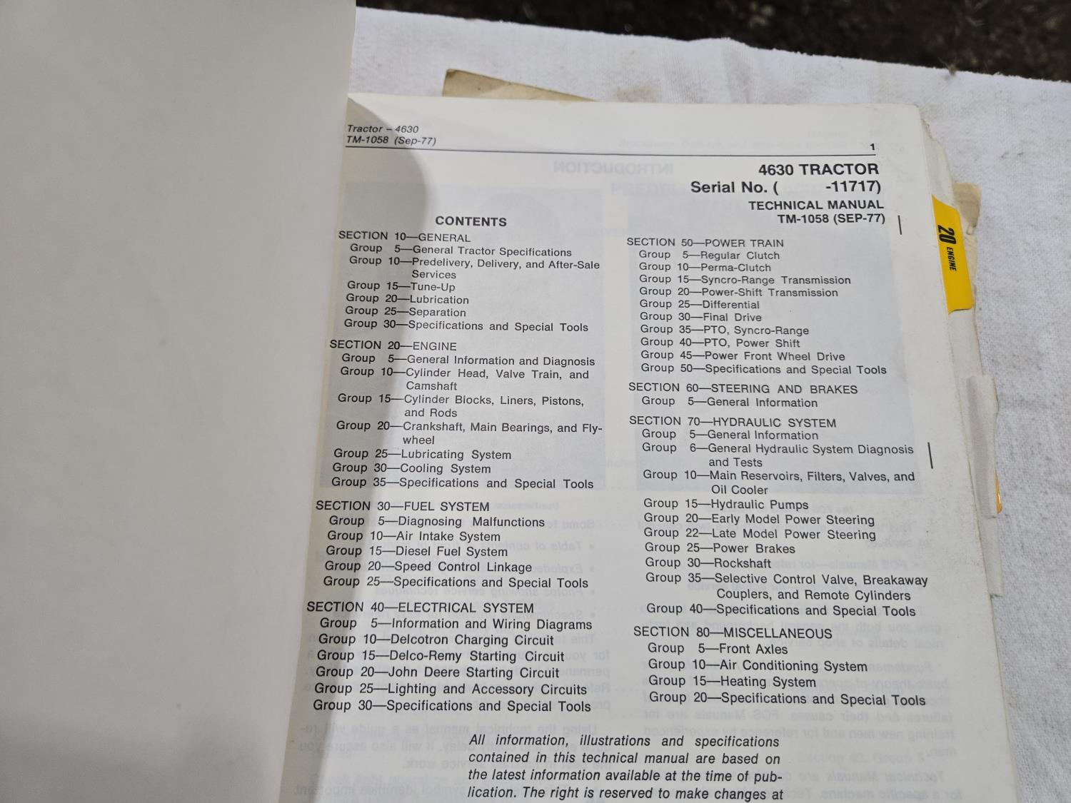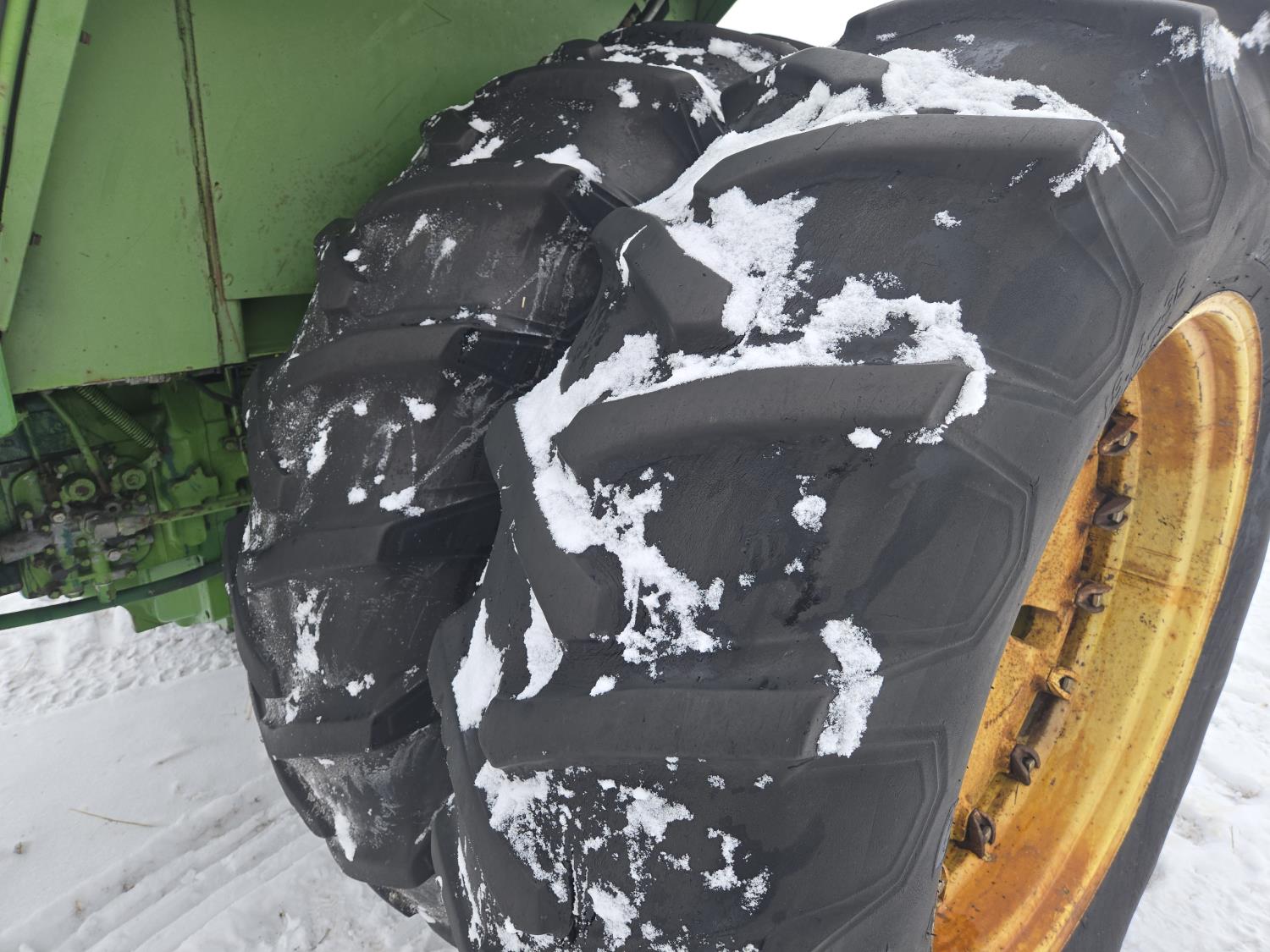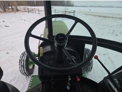 John Deere 6.6 L 6 cylinder diesel engine, 150 PTO HP, 8 speed manual transmission, cab, A/C, 1000 PTO, 3 rear hydraulic outlets, 11.00-16.5 front tires, 18.4-38 rear tires, factory duals, operators and parts manual