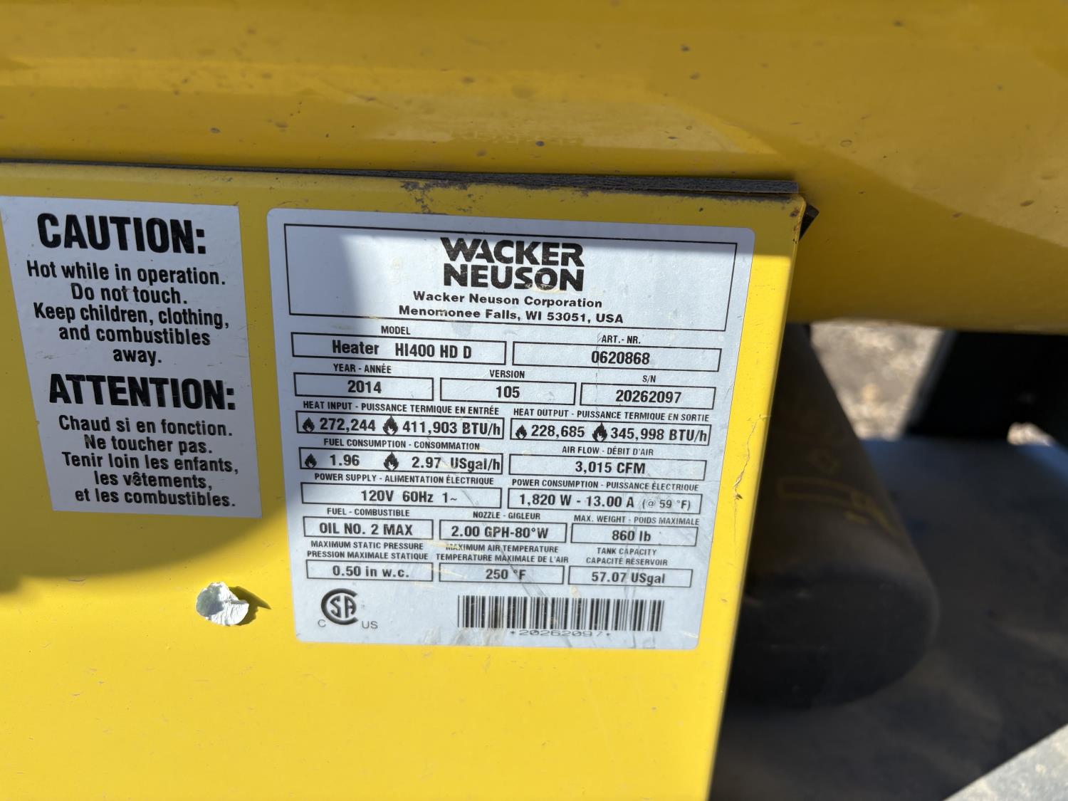131 2014 Wacker Neuson HI400HD 350 000 BTU Diesel Heater