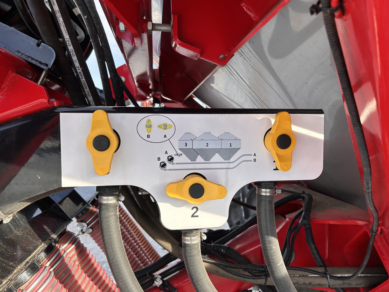 15 inch spacing, double shoot openers, seed monitor, blockage sensors, Raven monitors, Air Cart: 3 compartments, 10 inch loading auger, double fan, variable rate metering, sectional control, dual 620/70R42 rear tires