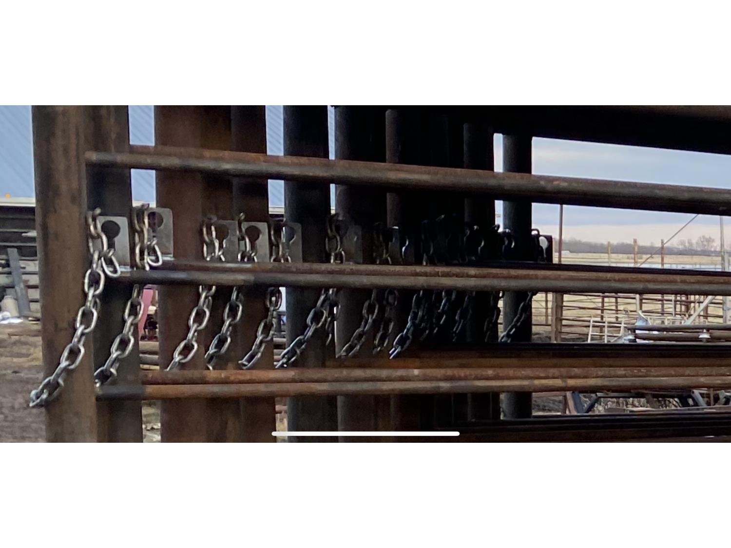 7 ft high, 2-7/8 inch frame, (8) 1 inch sucker rod rails with 7-3/4 inch spacing, double connector chains one one end, professionally welded, all CNC machine locks and holes for rods, delivery available on 20 or more panels for $3.00 loaded km