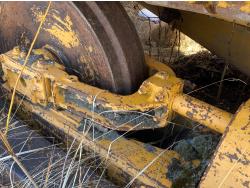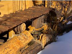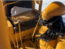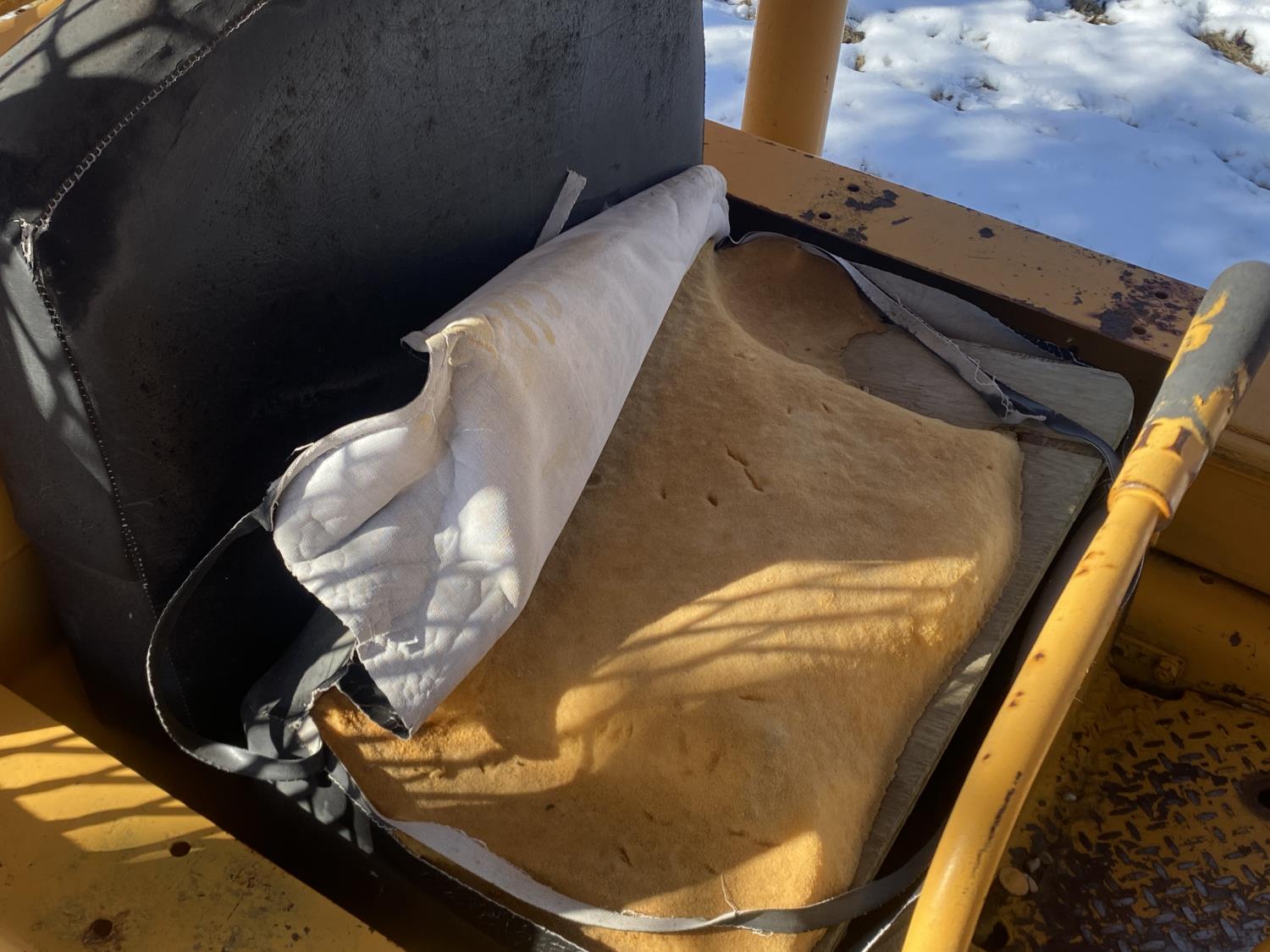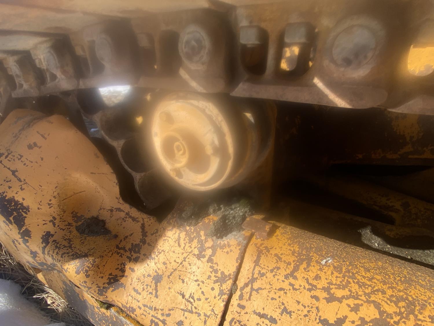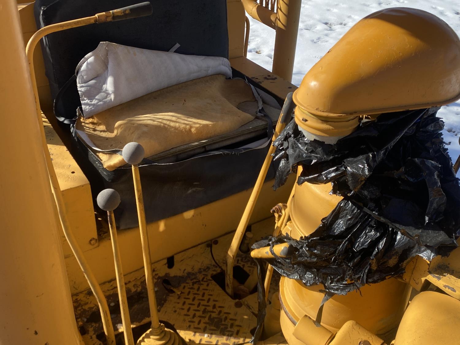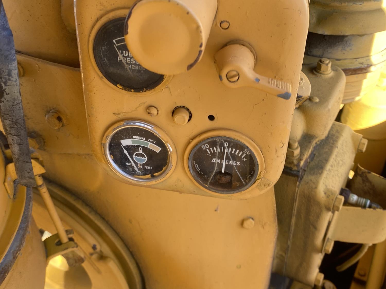 Open station with canopy, 2 cyl starting pup (runs) gas engine, 6 cyl Cat diesel engine, manual transmission, 11 Ft manual angle dozer, drawbar, 20 inch track pads, single grousers