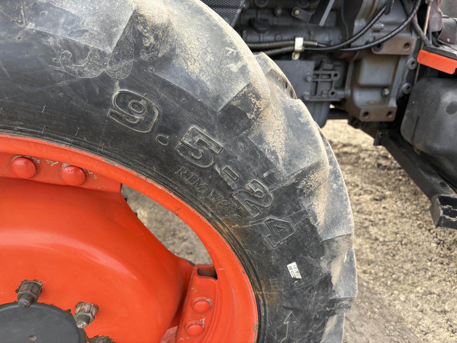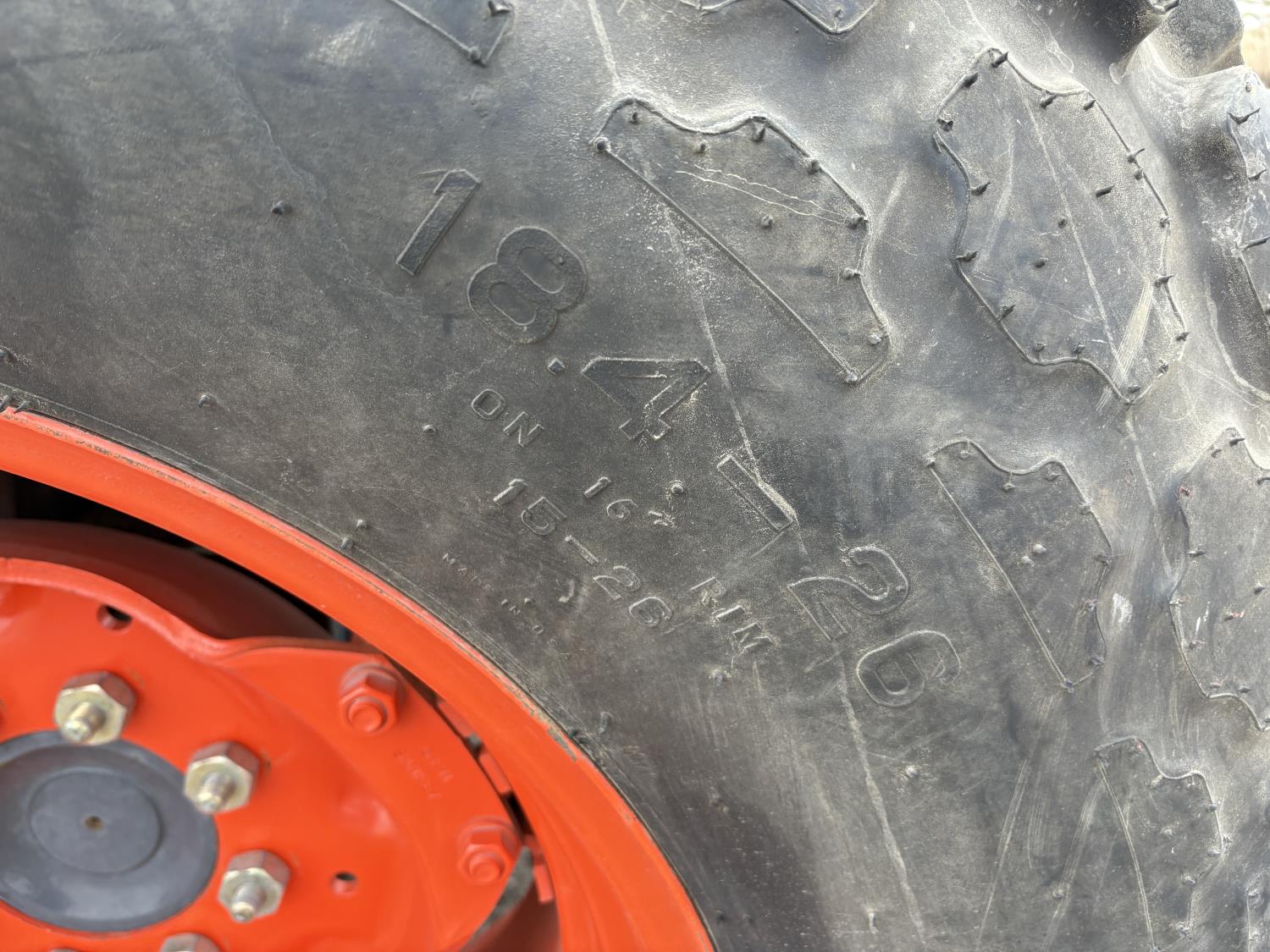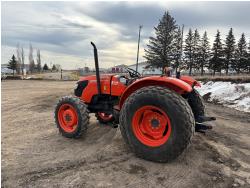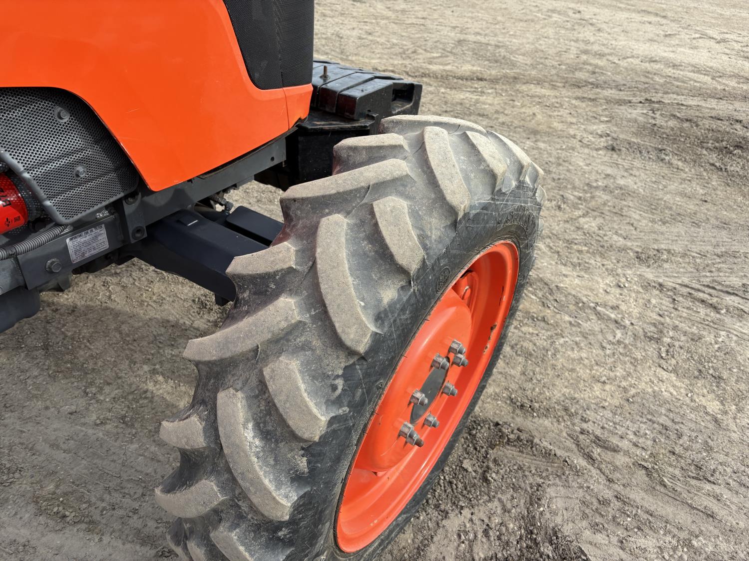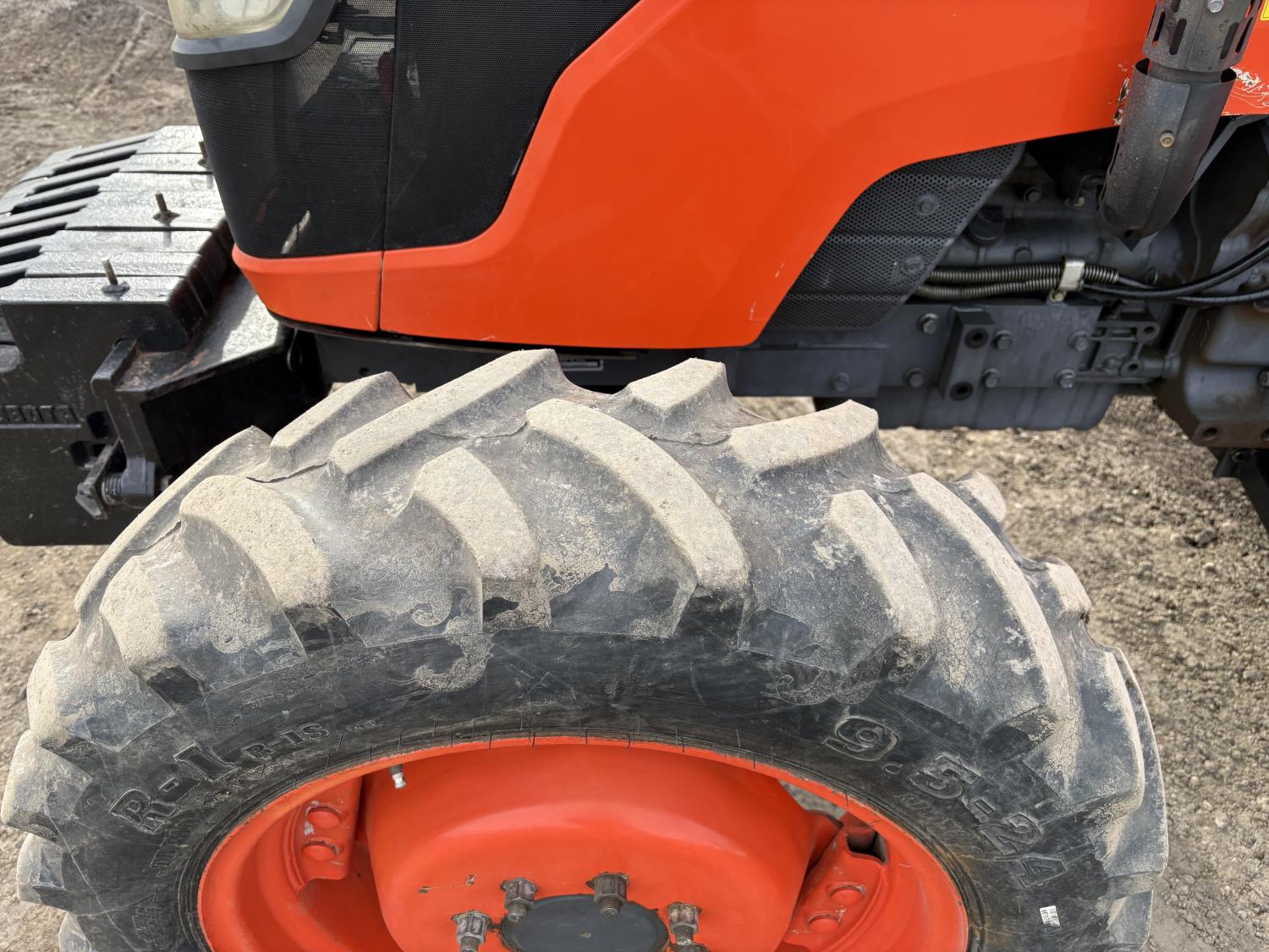 Kubota diesel engine, 67 PTO HP, 6 speed Hydraulic Shuttle partial power shift transmission, open station platform, left hand reverser, 540 PTO, 3 point hitch, 9.5-24 front tires, 18.4-26 rear tires, Front Wheel Assist