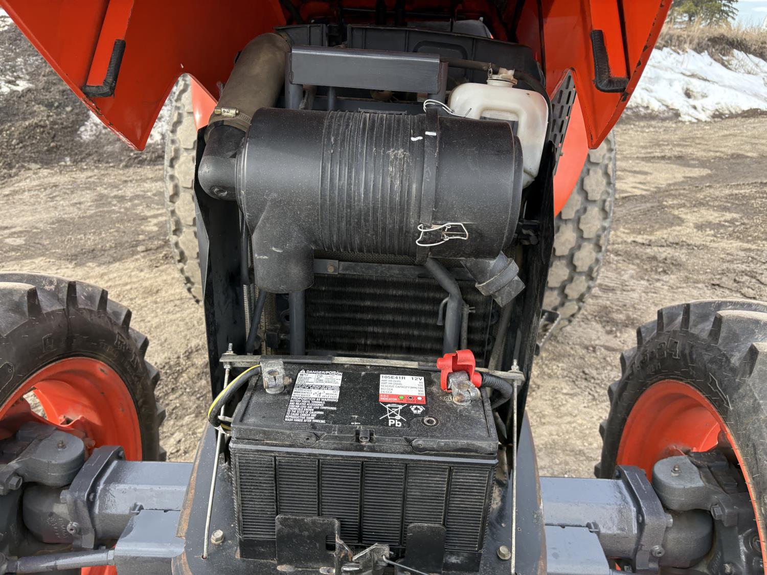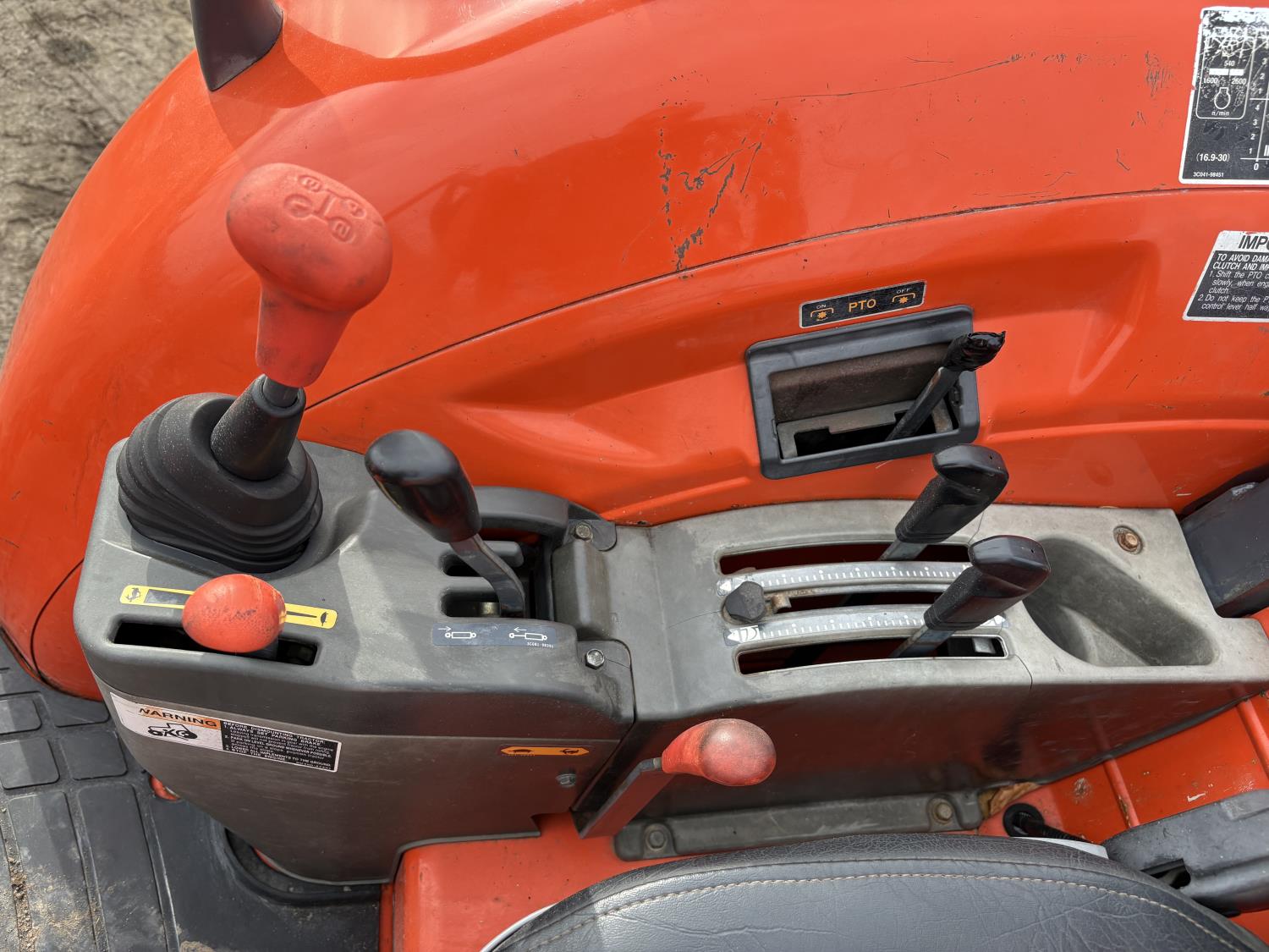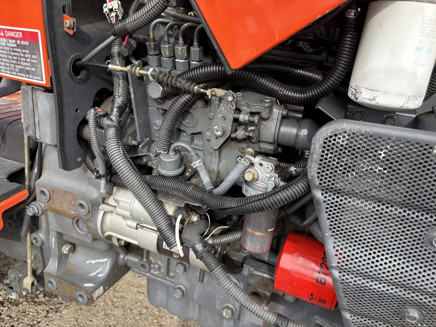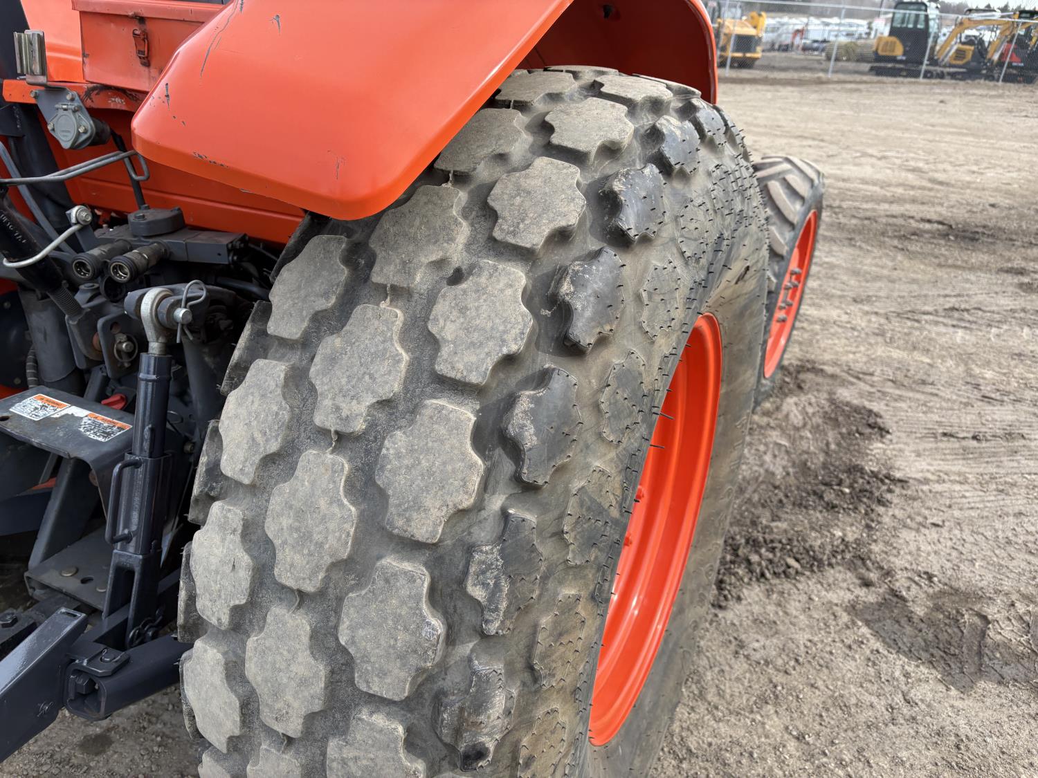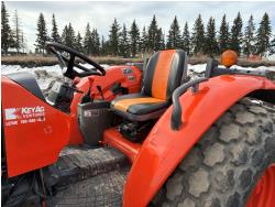 Kubota diesel engine, 67 PTO HP, 6 speed Hydraulic Shuttle partial power shift transmission, open station platform, left hand reverser, 540 PTO, 3 point hitch, 9.5-24 front tires, 18.4-26 rear tires, Front Wheel Assist
