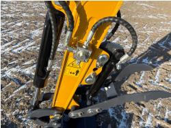 Open station, Rato gas engine, 14 inch dig bucket, hydraulic thumb, backfill blade, 7 inch rubber tracks