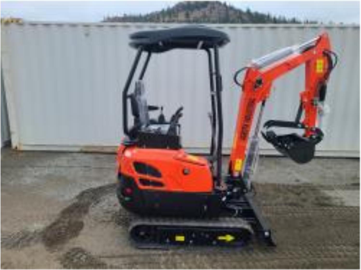 Open station, 16 inch dig bucket, manual thumb, swing boom, backfill blade, 15HP Yanmar Diesel, 7 inch rubber tracks