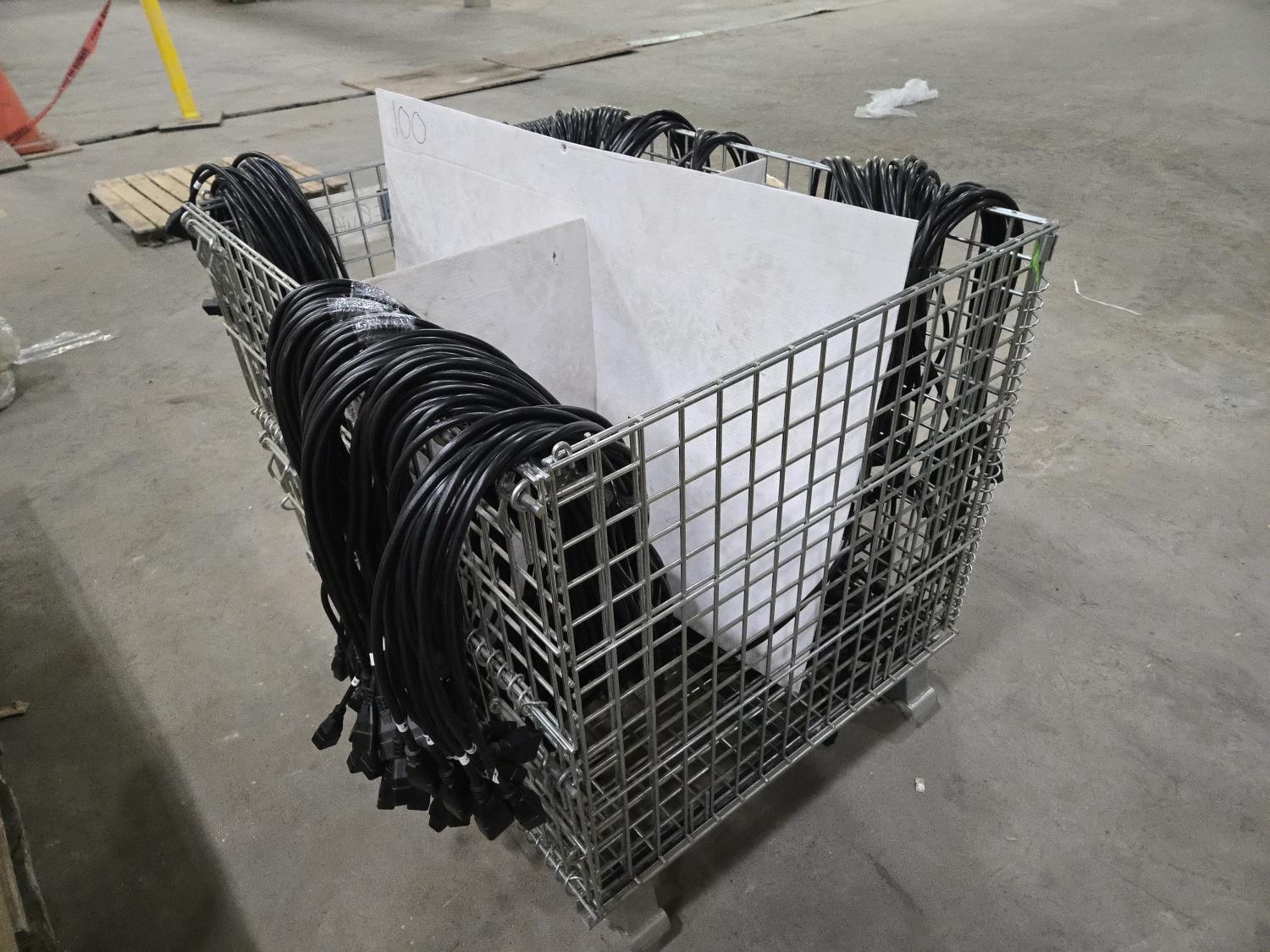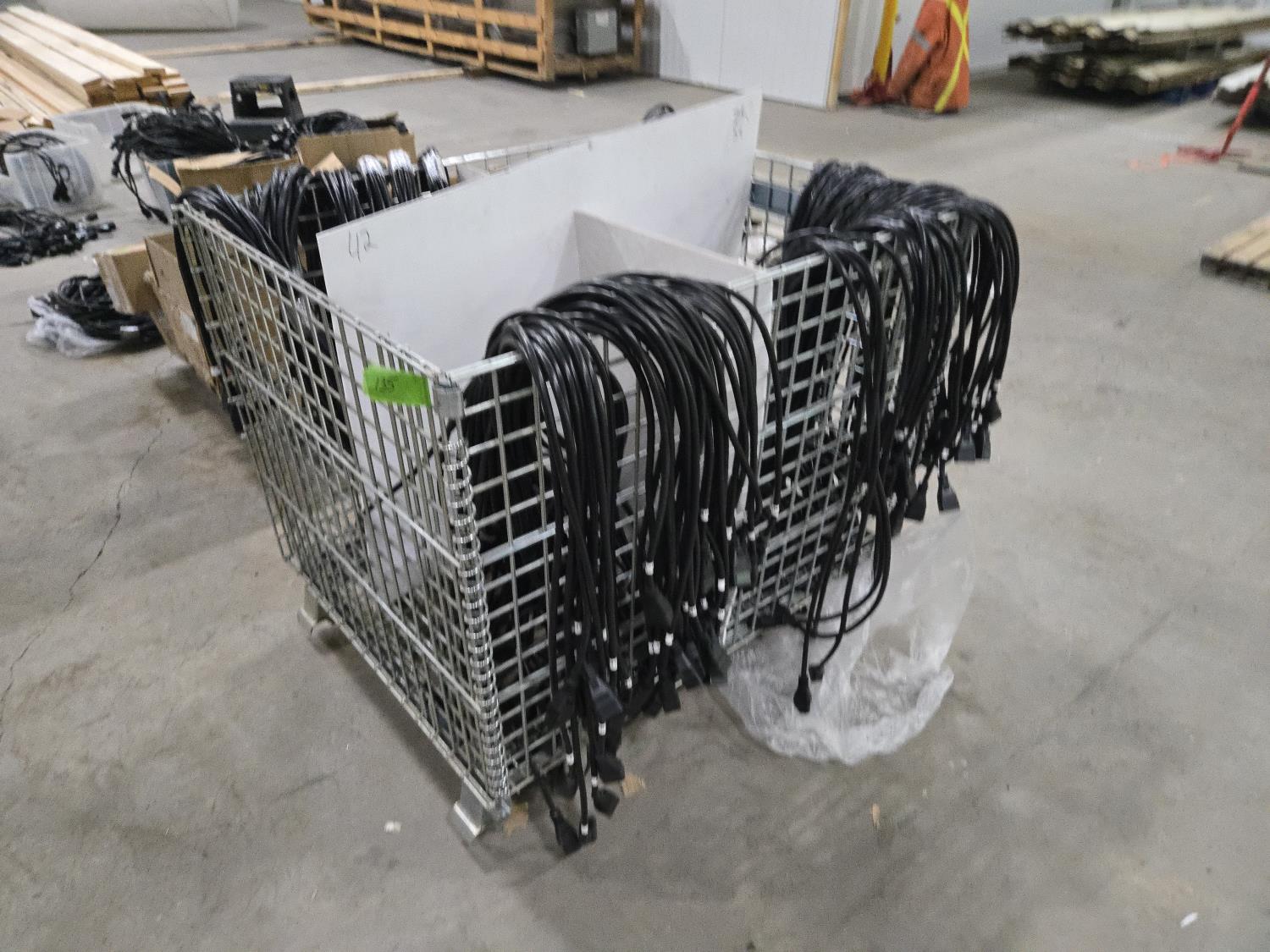 56 of 6 ft, 59 of 7 ft 100 of 3 ft, 54 of 5 ft, 6 of 11 ft all quantities are (±), c/w wire caged tote