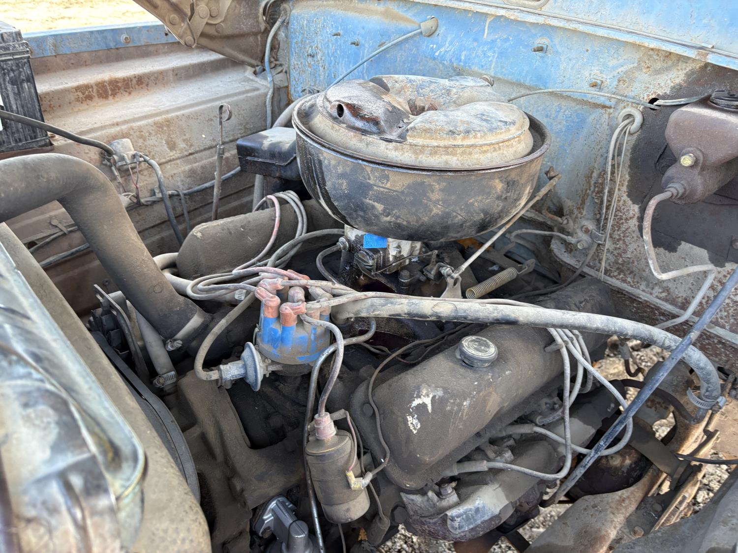 300 V8 engine, 5 speed manual transmission, woodbox size 140"x 90"x 48" sides, 8.25-20 tires