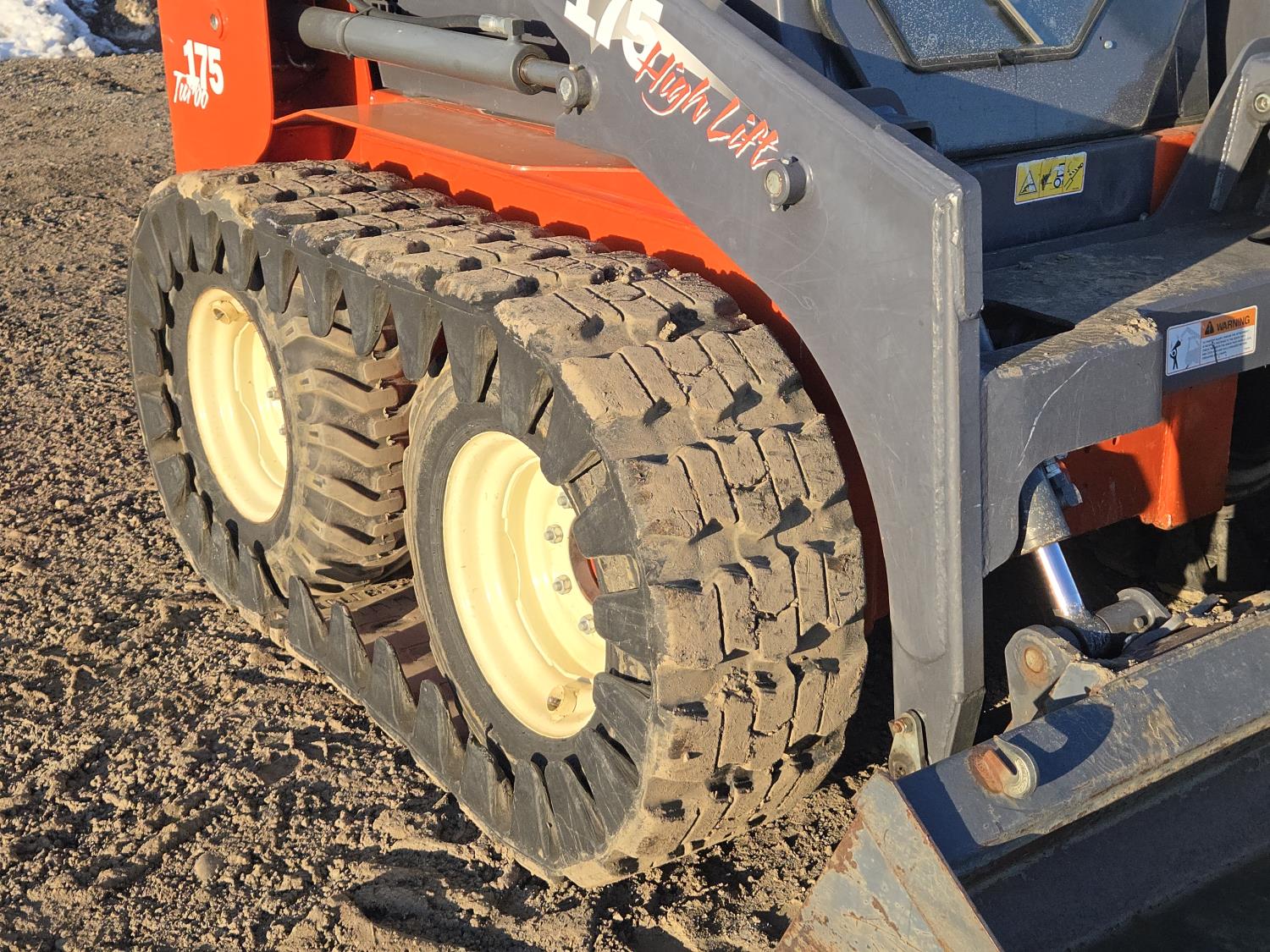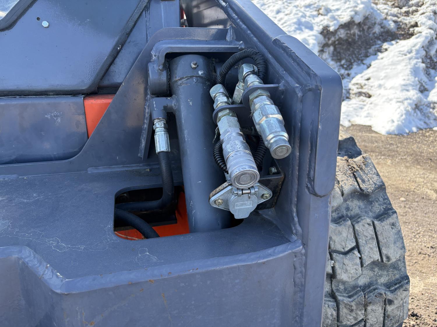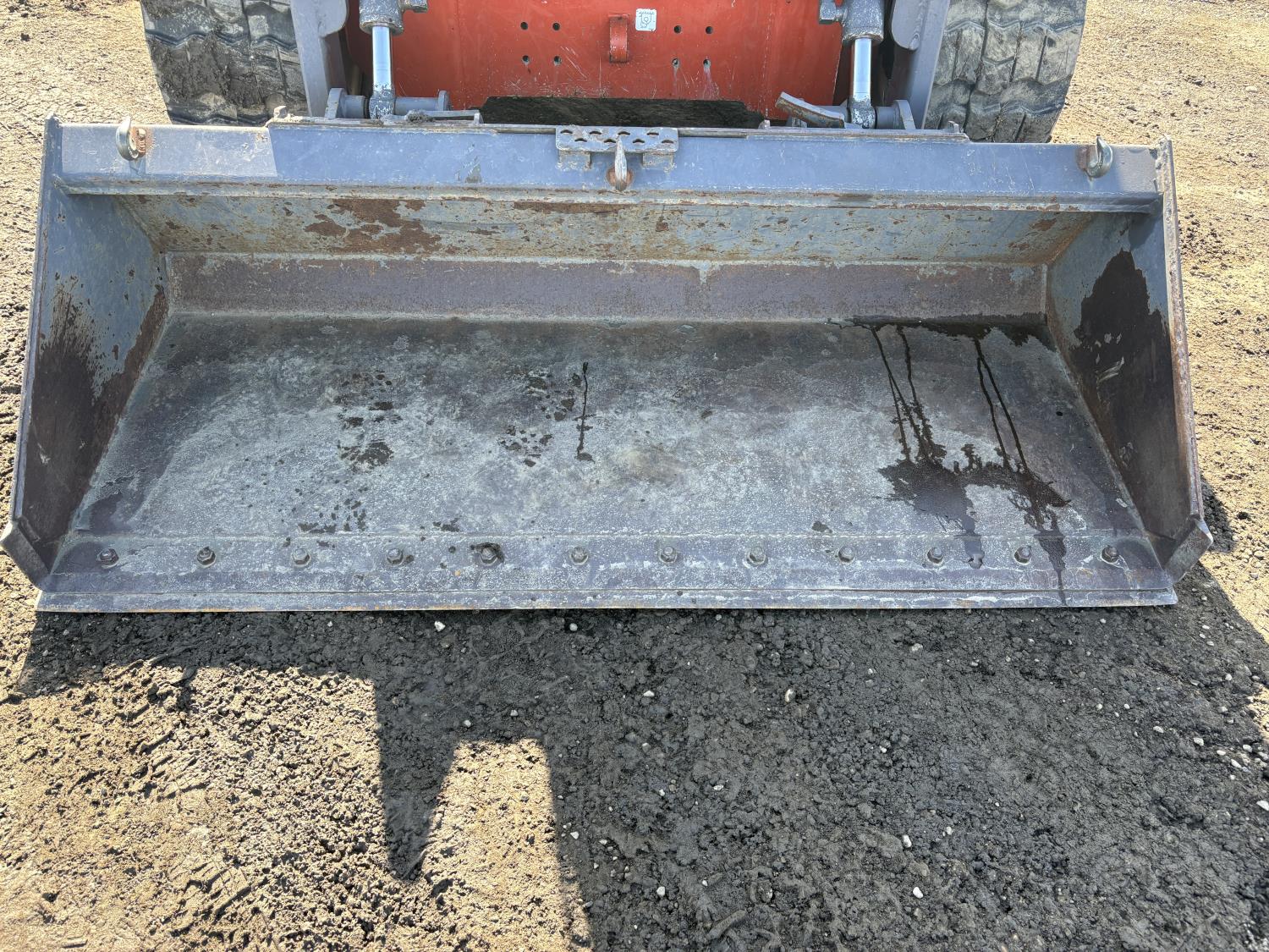 Enclosed cab, Kubota 4 cyl 60 HP diesel engine, foot & lever control, 72 inch smooth bucket, manual coupler, 1 auxiliary hydraulics, block heater, 13" rubber removeable tracks, 10-16.5 tires