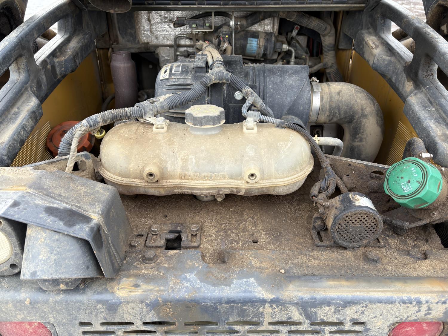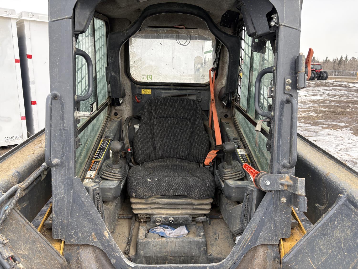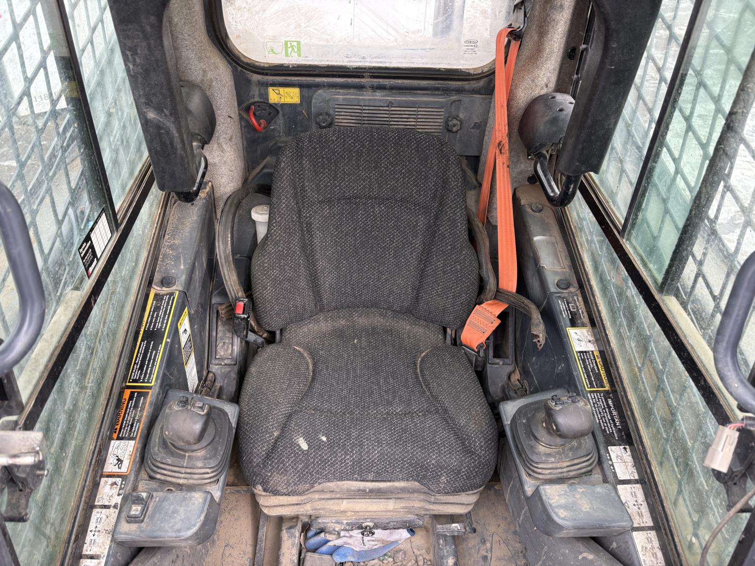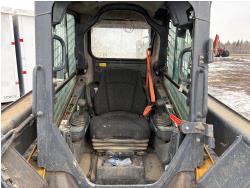 Enclosed cab, A/C, air ride seat, control pattern change, rear view cameras, diesel engine, 2 speed transmission, 72 inch toothed bucket, 1 auxiliary hydraulics, rubber tracks