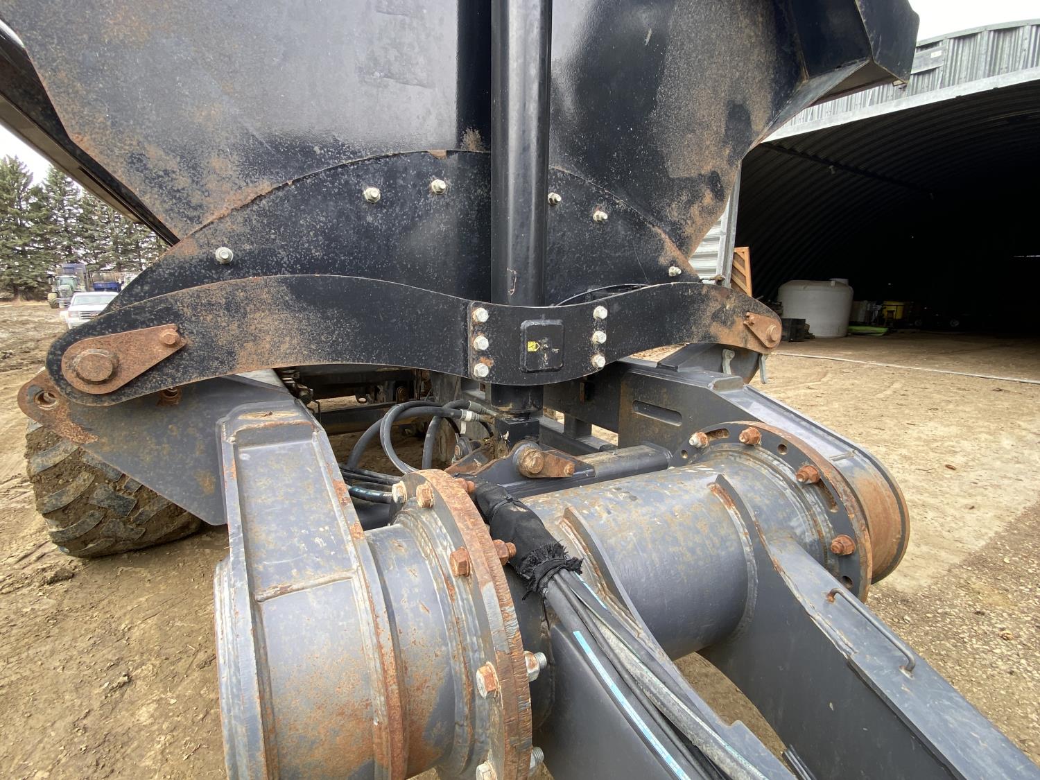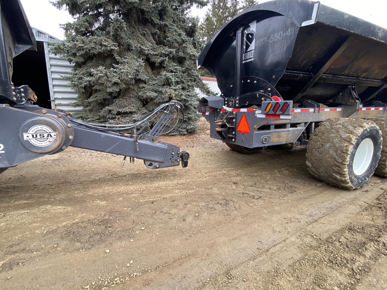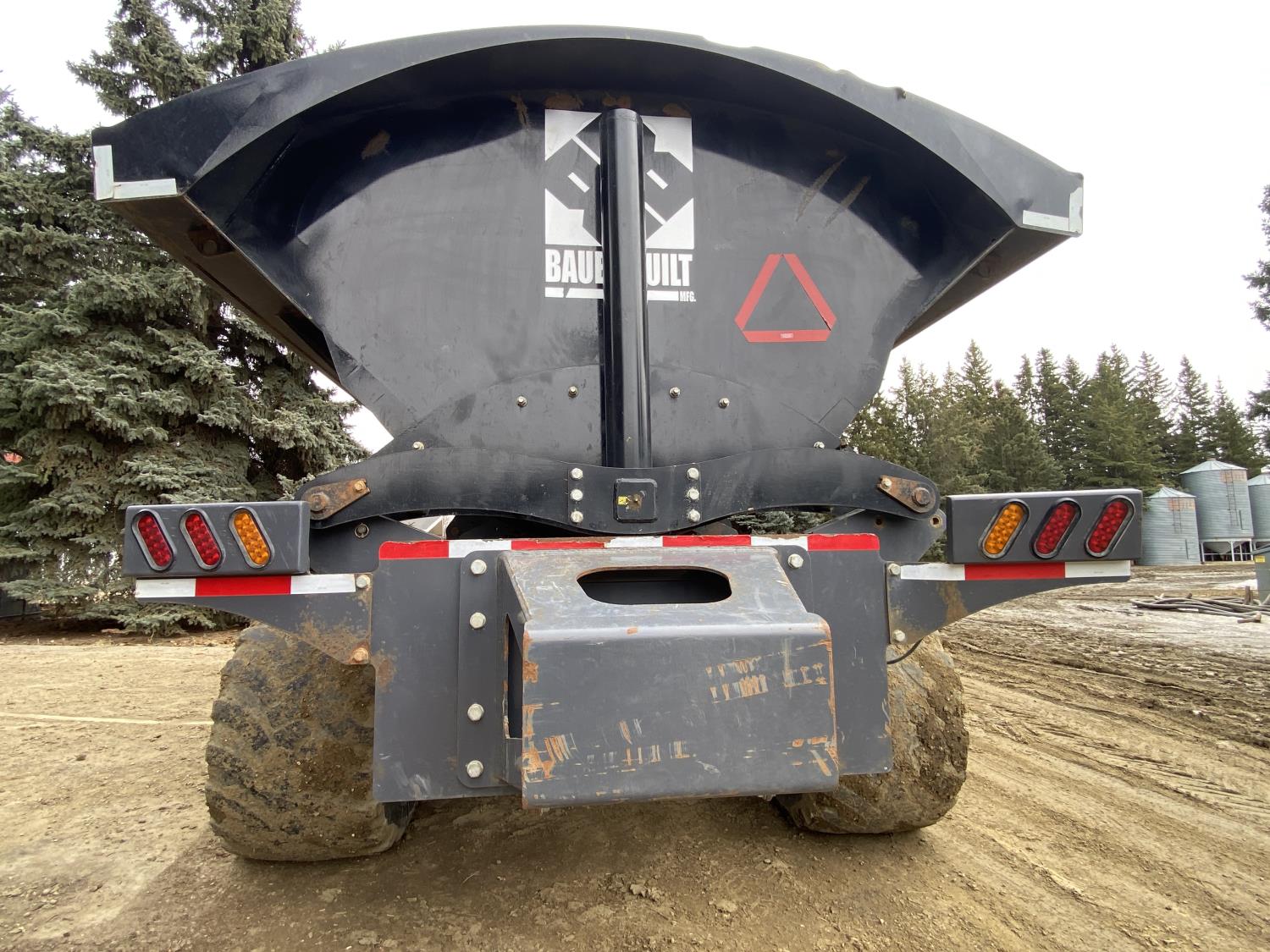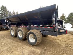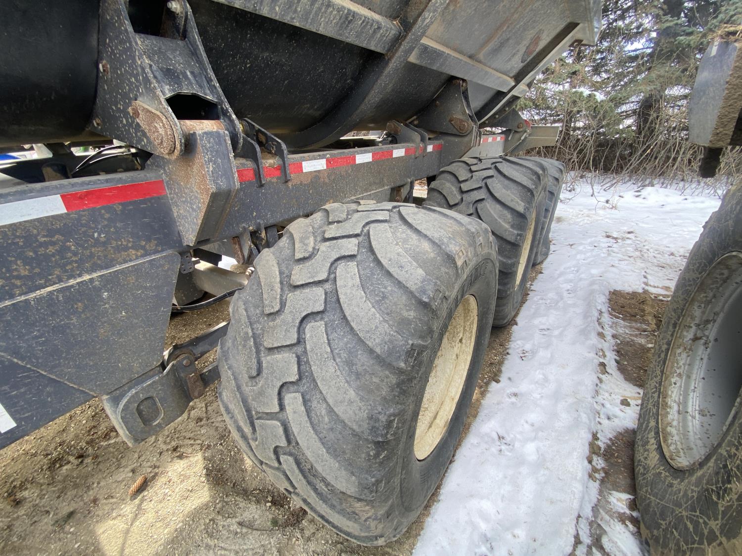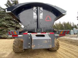 40 Ton/36 yard capacity, Tri axle design w/self steer rear axle, 6 hydraulic drum brakes, 50,000 lb rated hub & spindle, 360 degree rollover hitch, ag hitch, Alliance 750/45R26.5 floater tires, rear trailer connects to main lead trailer for full hydraulic & electrical, rear bumper push plate
