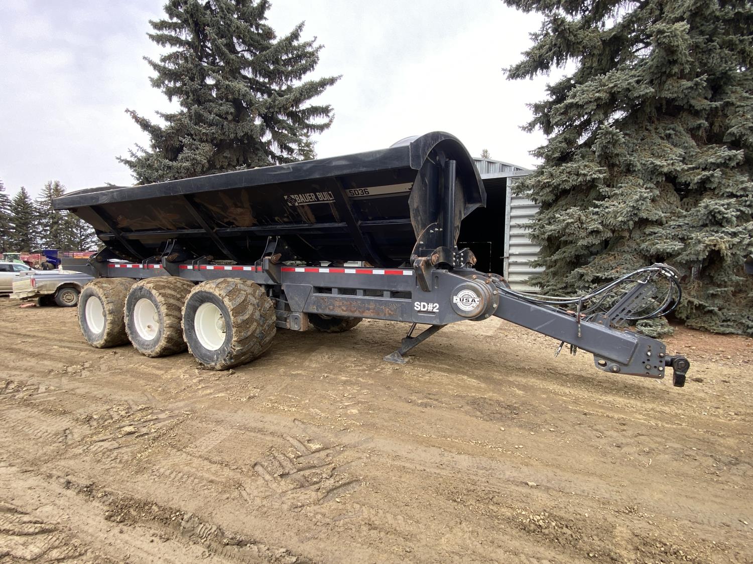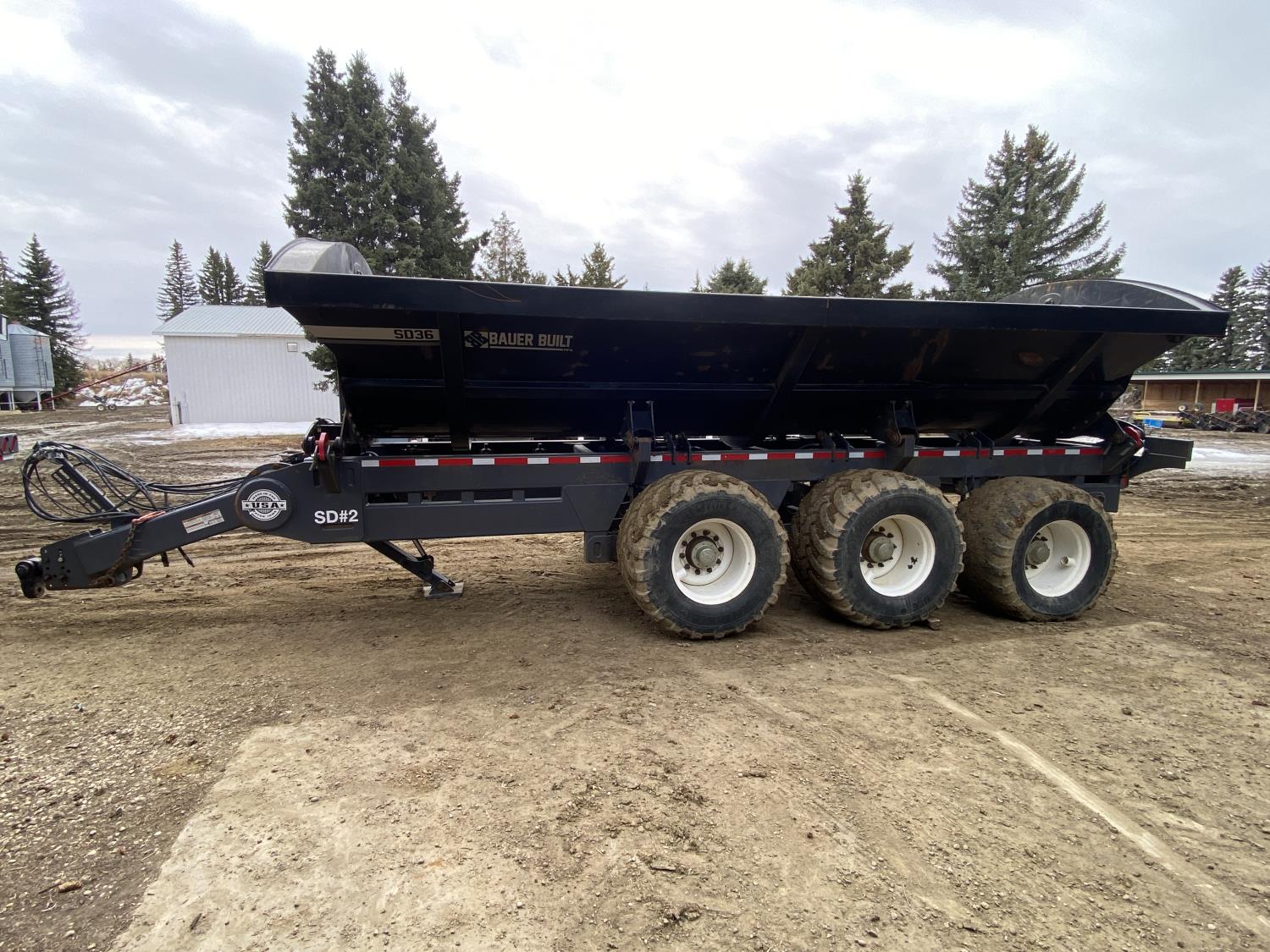 201 2021 Bauer SDT36 Tri Axle Side Dump Trailer (Rear)
