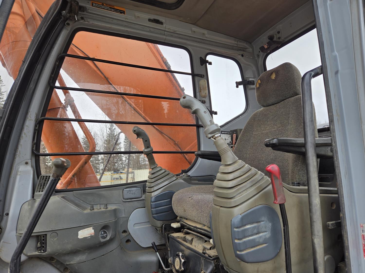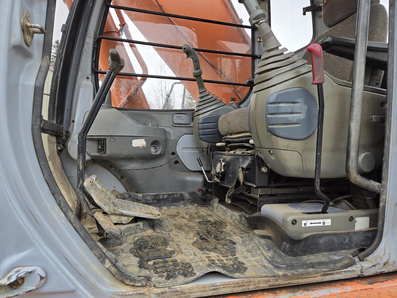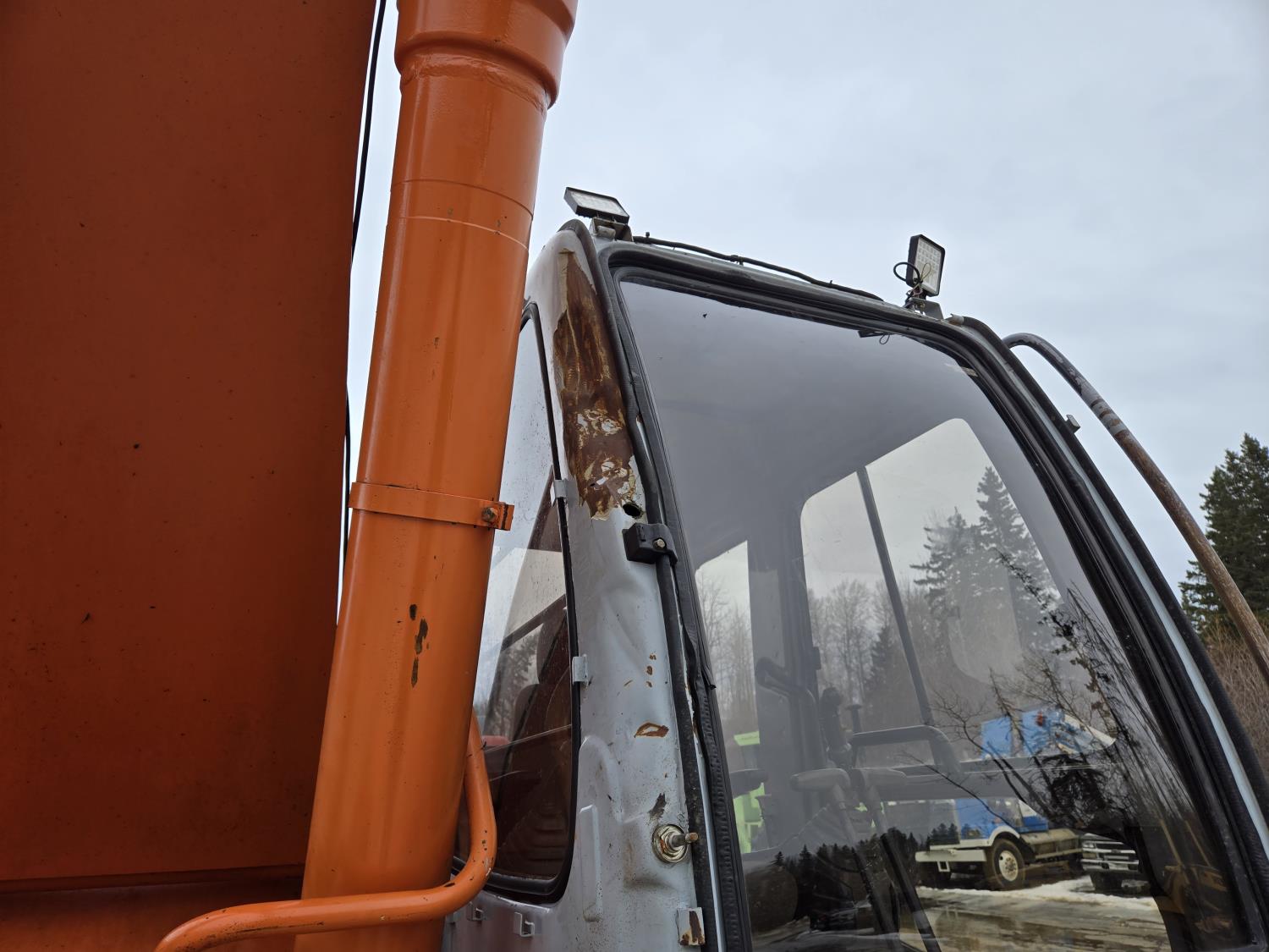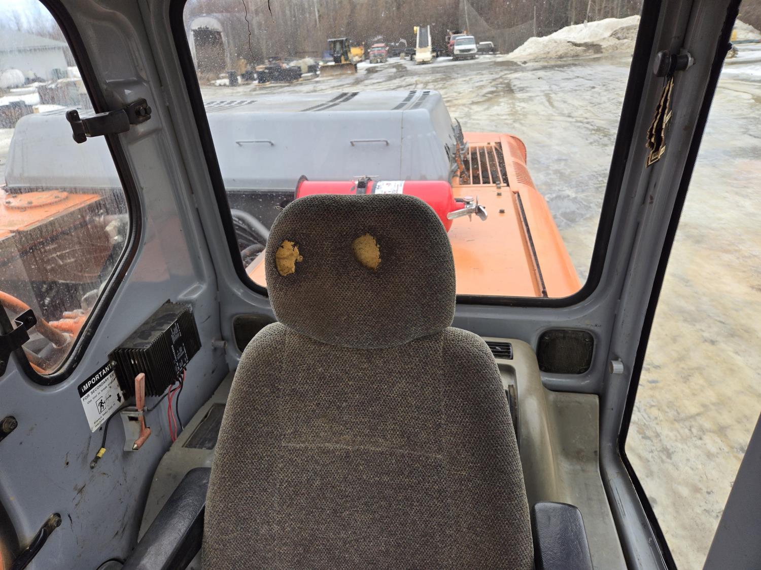 Enclosed cab, A/C, air ride seat, bucket, hydraulic thumb, triple grousers
