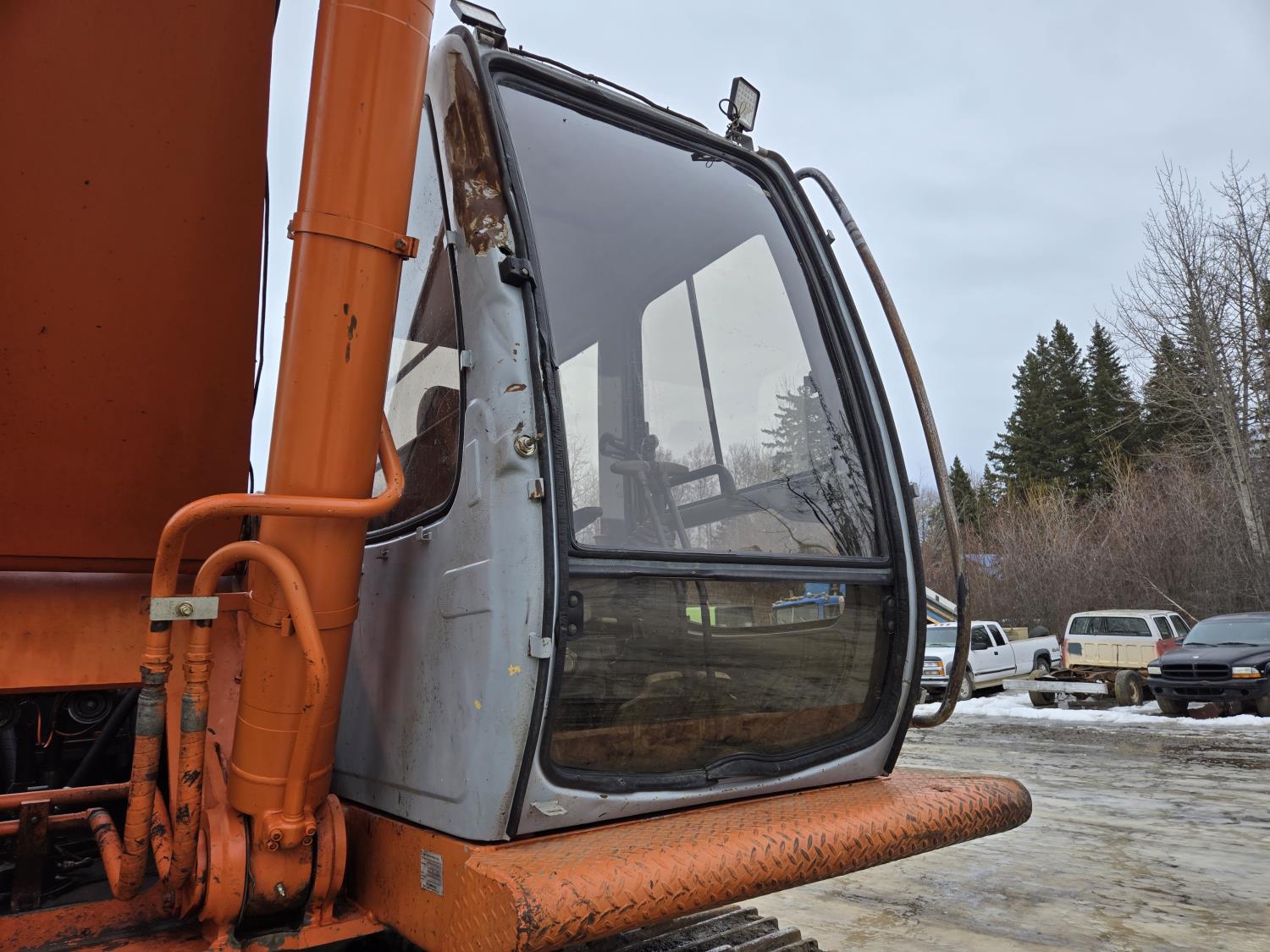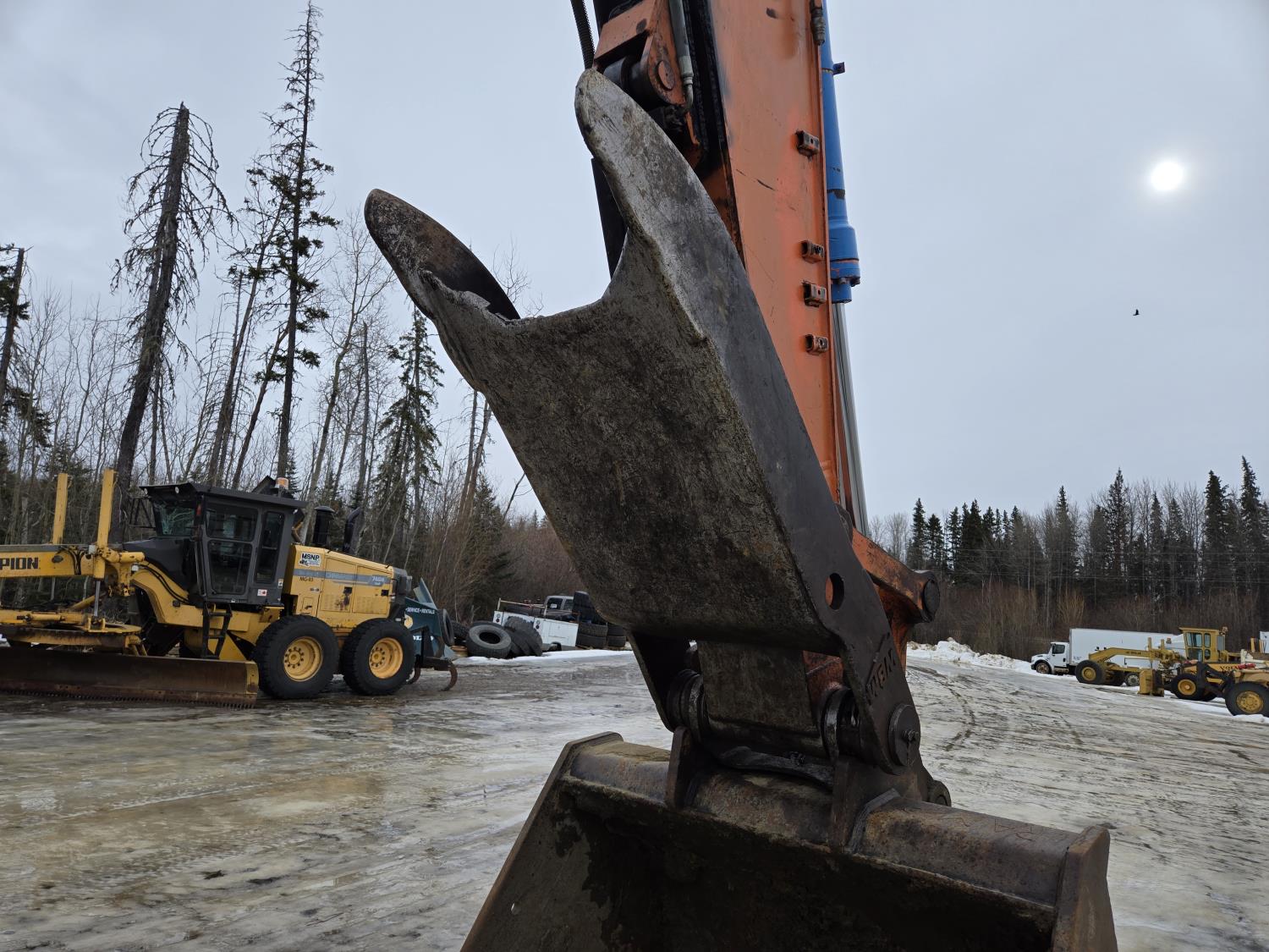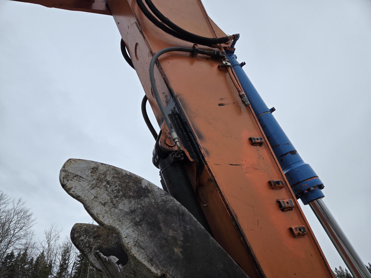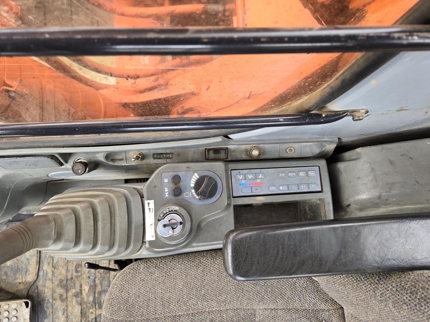 Enclosed cab, A/C, air ride seat, bucket, hydraulic thumb, triple grousers