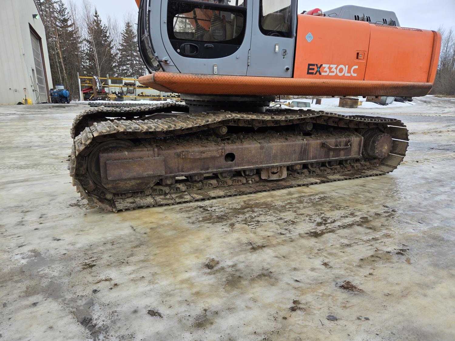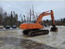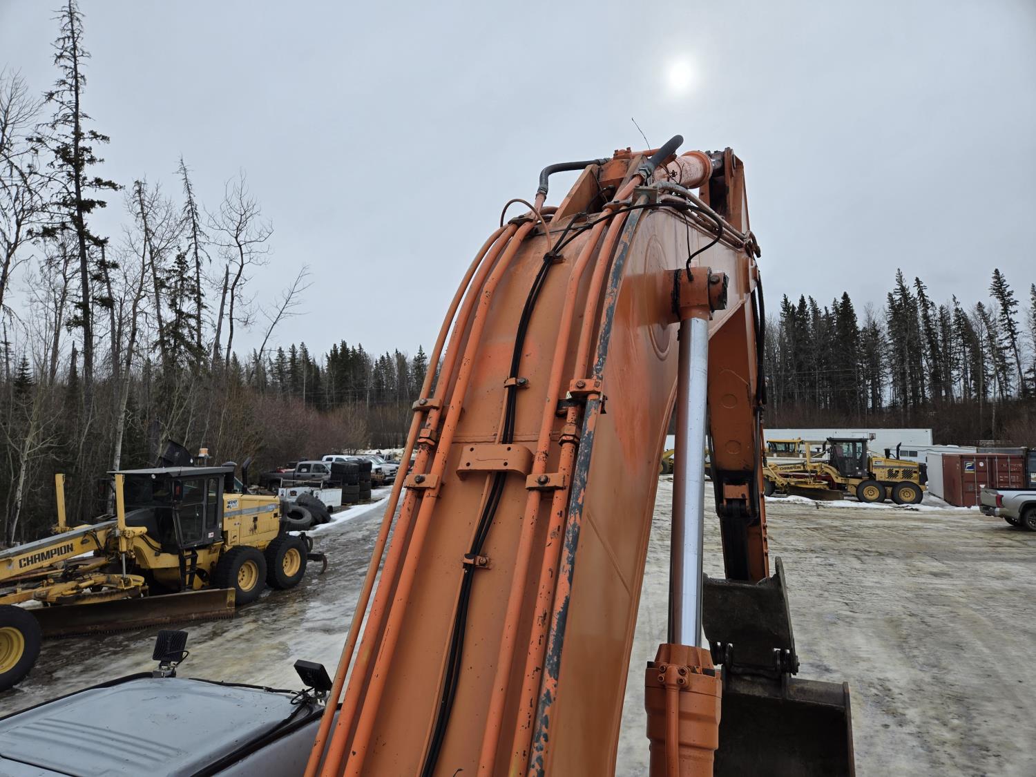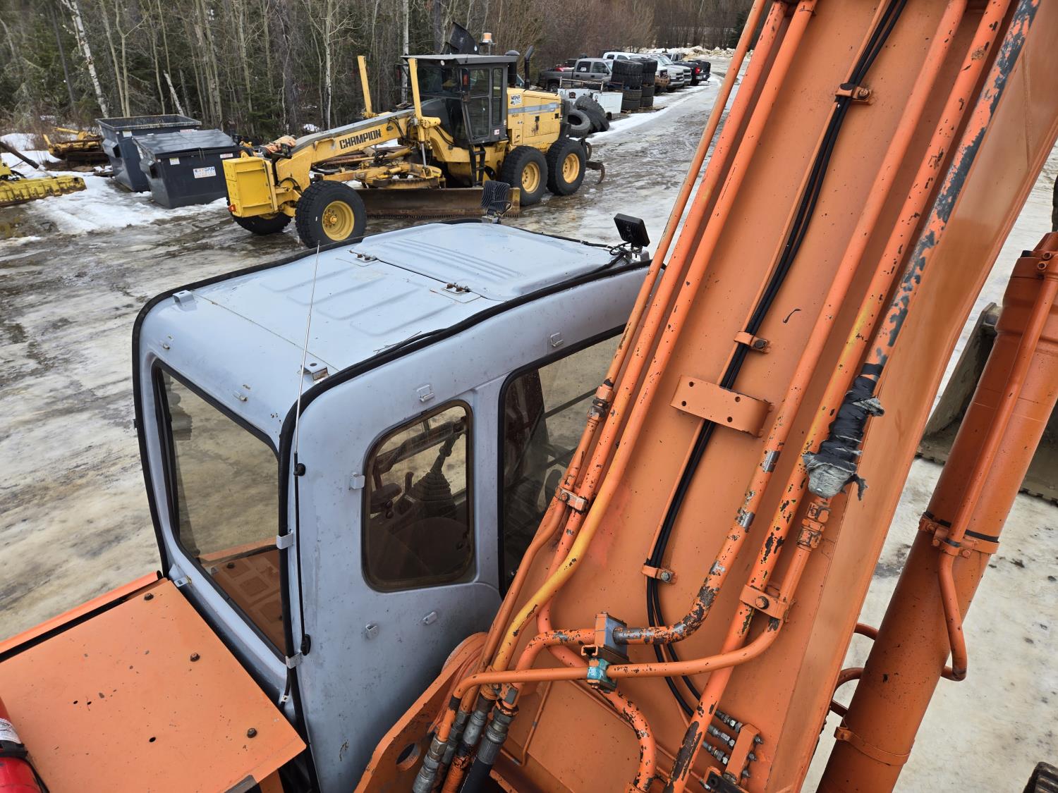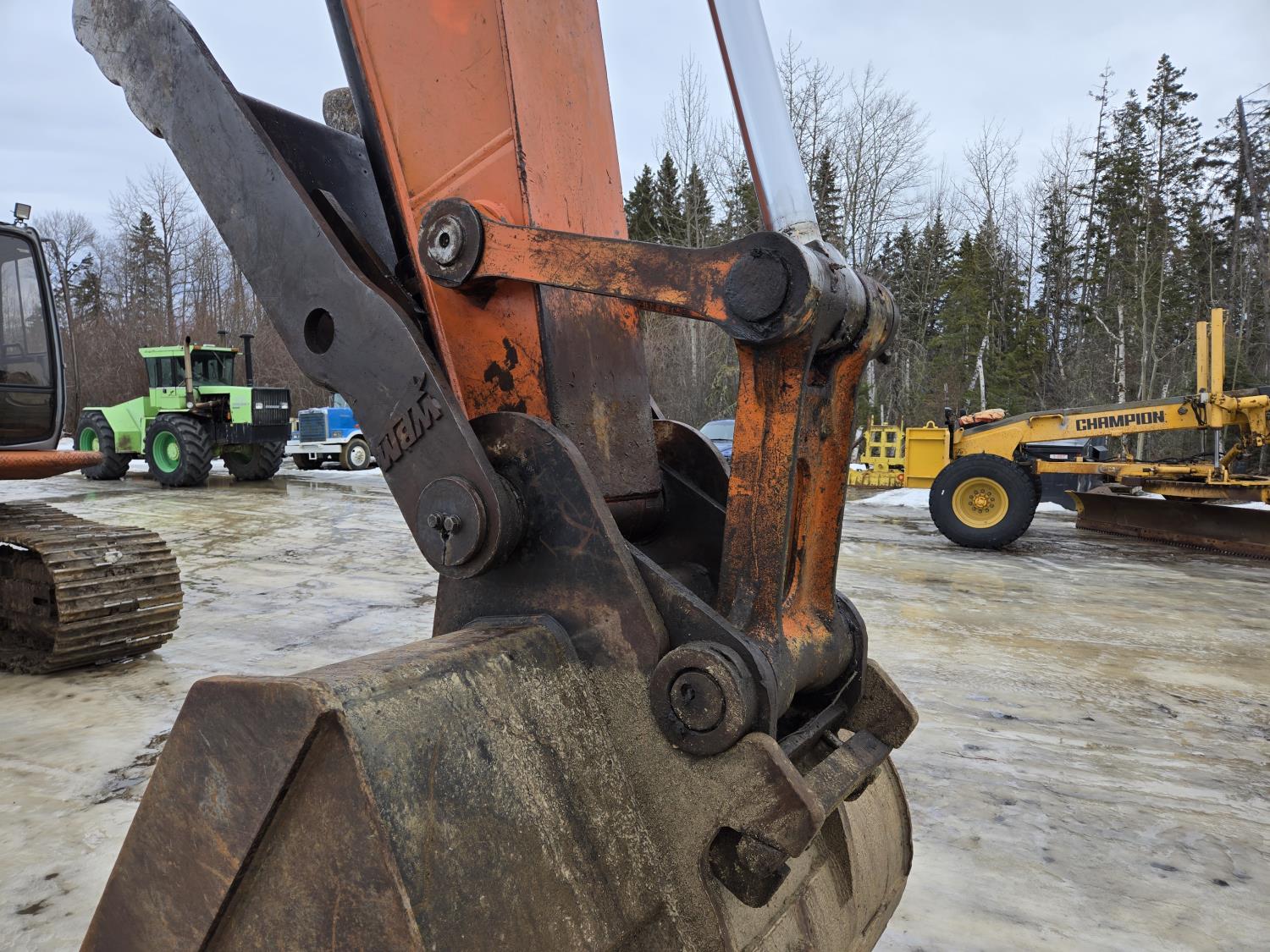 Enclosed cab, A/C, air ride seat, bucket, hydraulic thumb, triple grousers